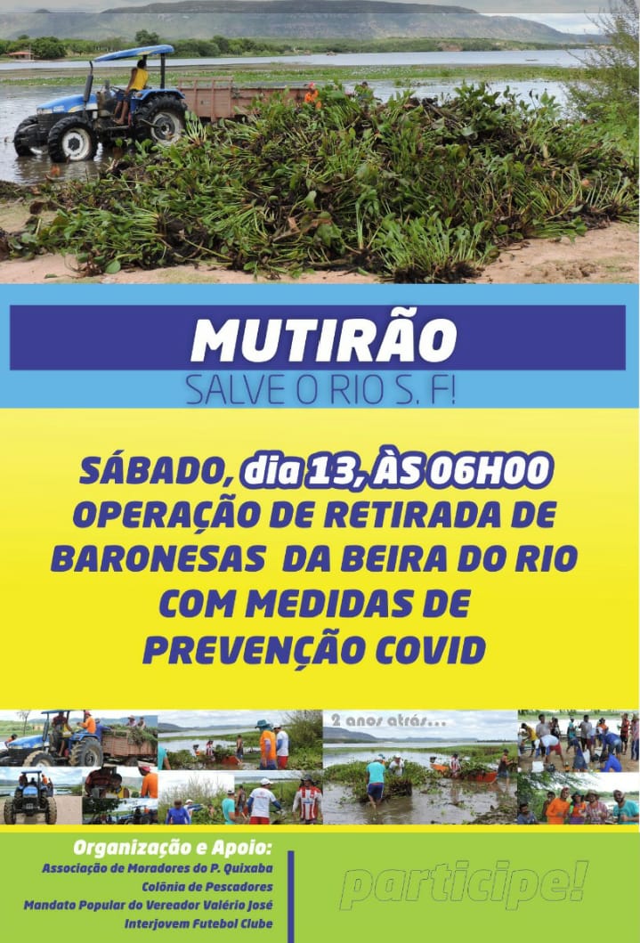 Cansados de esperar pelo Governo Municipal do Prefeito David Cavalcanti-Progressistas, a Associação de Moradores do Povoado Quixaba município de Glória Bahia realizou dia 13 de março de 2021 um Mutirão Em Defesa do Rio São Francisco, e limparam parcialmente a área de banho e lazer da comunidade, retirando baronesas e taboas da Beira Rio.