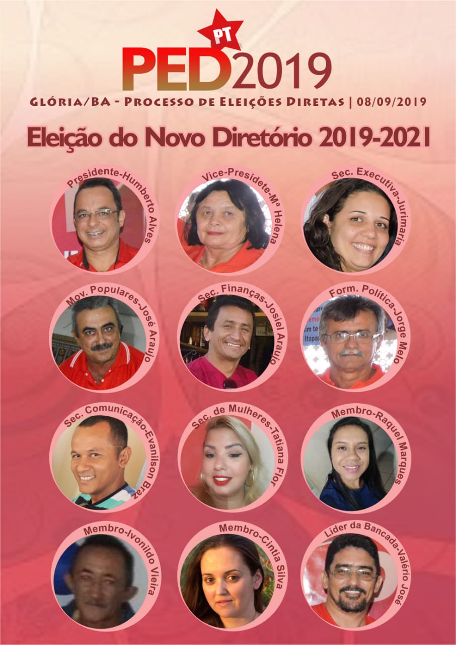 O PT-Partido dos Trabalhadores da cidade de Glória Bahia também realizou o PED-Processo Eleitoral Democrático, “onde mantém-se firme e forte nos seus propósitos políticos e sociais”. Comentou Josiel.