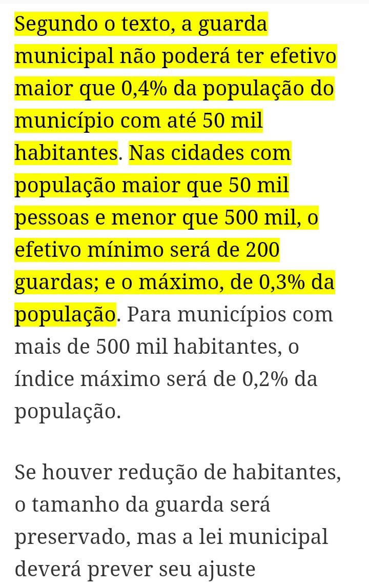 Segundo informações da ex-comandante da GCM da cidade de Jeremoabo Bahia Manuela Alves, para ser criada a GCM em qualquer cidade, sua população deverá ter aproximadamente 4 mil habitantes, é o caso da cidade de Gavião na Bahia com uma população de 4.788 habitantes, lá são 23 Servidores concursados, 21 deles estão em atividades. Sua receita anual é de R$ 17.649.456,04 . (dezessete milhões seiscentos e quarenta e nove mil quatrocentos e ccinquenta e seis mil reais e quatro centavos).