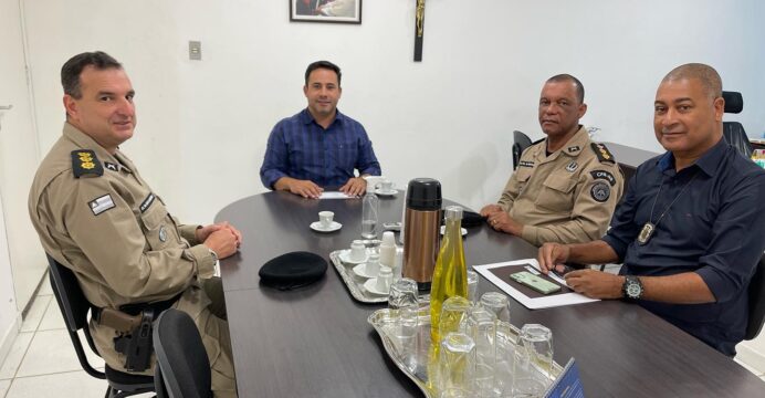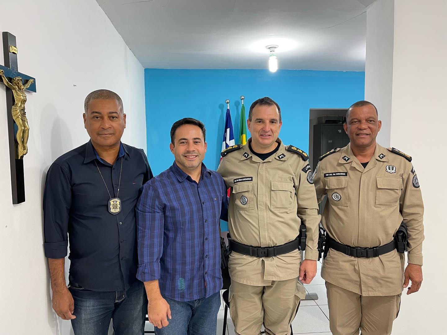 Em uma reunião realizada nesta sexta-feira 18 de agosto de 2023 no Gabinete do Prefeito David de Souza Cavalcanti-Progressistas, com o Coronel César Albuquerque, o Tenente Coronel Fernandes, respectivamente Comandante e Subcomandante do Comando de Policiamento da Região Nordeste da Polícia Militar da Bahia, e o Delegado da Polícia Civil Marco Antônio Bacelar, a fim de tratar de assuntos referente as parcerias.
