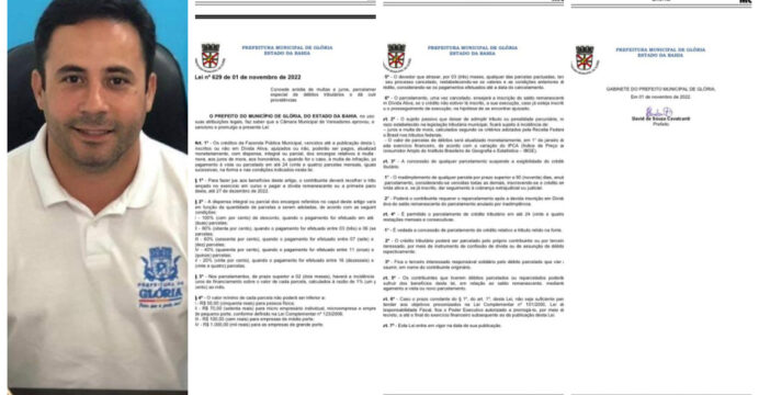 A Prefeitura Municipal de Glória-BA, na Gestão do Prefeito David Cavalcanti, com o propósito de conceder benefícios fiscais para o contribuinte gloriense, enviou à Câmara de Vereadores de Glória, no dia 20 de outubro de 2022, em regime de urgência, o Projeto de Lei Nº 012/2022, que institui o Refis – Programa de Recuperação Fiscal, propondo anistiar em até 100% os juros e multas das dívidas tributárias do contribuinte com a Prefeitura Municipal, como também que os débitos sejam parcelados, caso o contribuinte não possa pagar à vista.