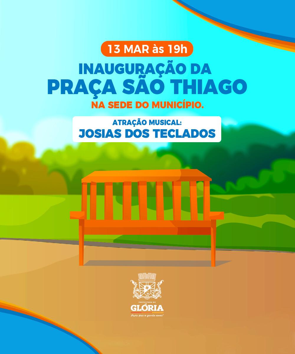 A prefeitura Municipal da cidade de Glória Bahia, através da SEINFRA-Secretaria de Infraestrutura convida todos para a inauguração da Praça São Thiago, na sede do município. O evento acontece sexta-feira, 13 de março, às 19h.