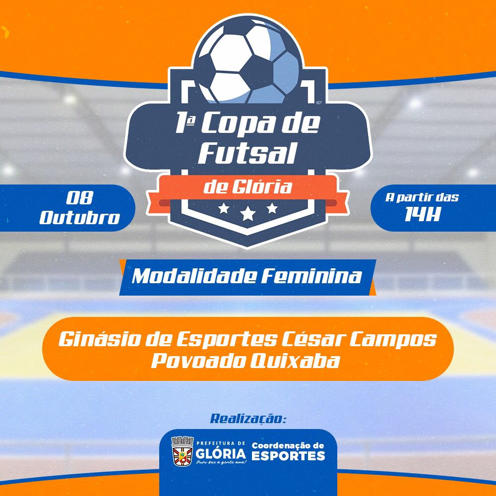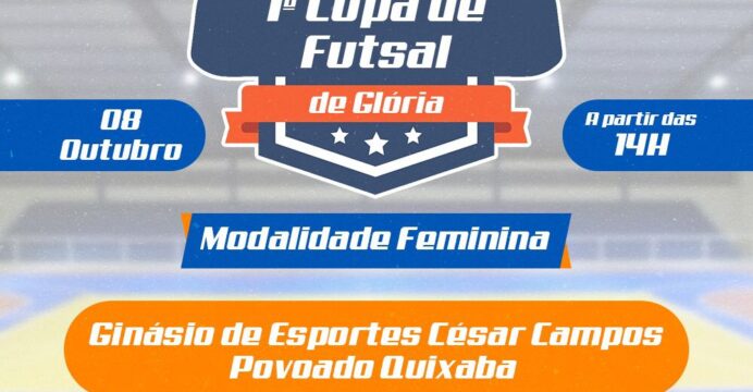 A Prefeitura Municipal de Glória BA, na gestão do Prefeito David Cavalcanti (PP), por meio da Secretaria de Governo e Coordenação de Esportes, promove neste sábado, dia 08 de outubro de 2022, a partir das 14h, a 1ª Copa Glória de Futsal Feminino, no Ginásio de Esportes César Campos, no Distrito Quixaba.