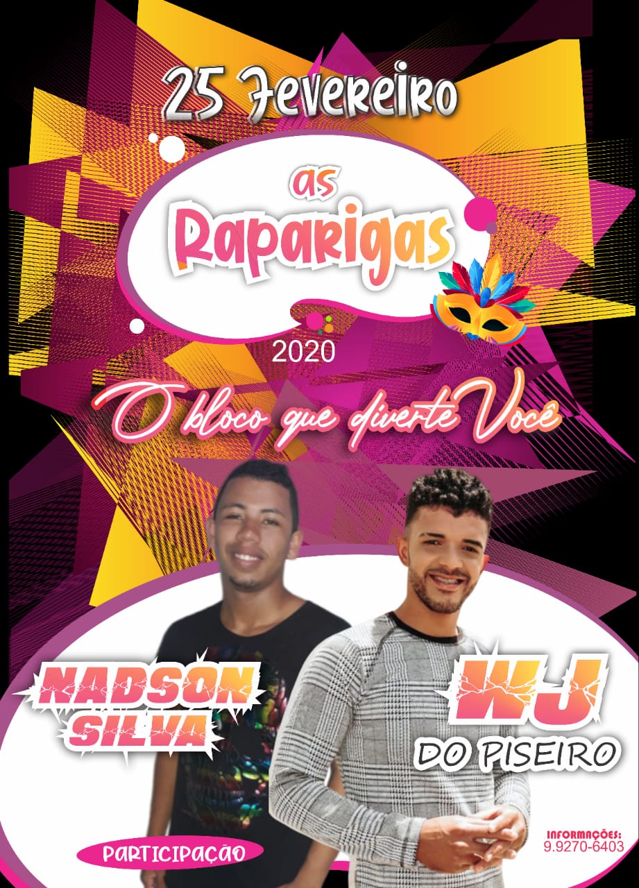 O evento vai contar com Som, Palco, Paredão e muita gente bonita. Atrações já confirmadas NADSON SILVA, WJ do Piseiro e Forró KOLANEU. As Raparigas é “O Bloco Que Diverte Você”. A partir das 18 horas.