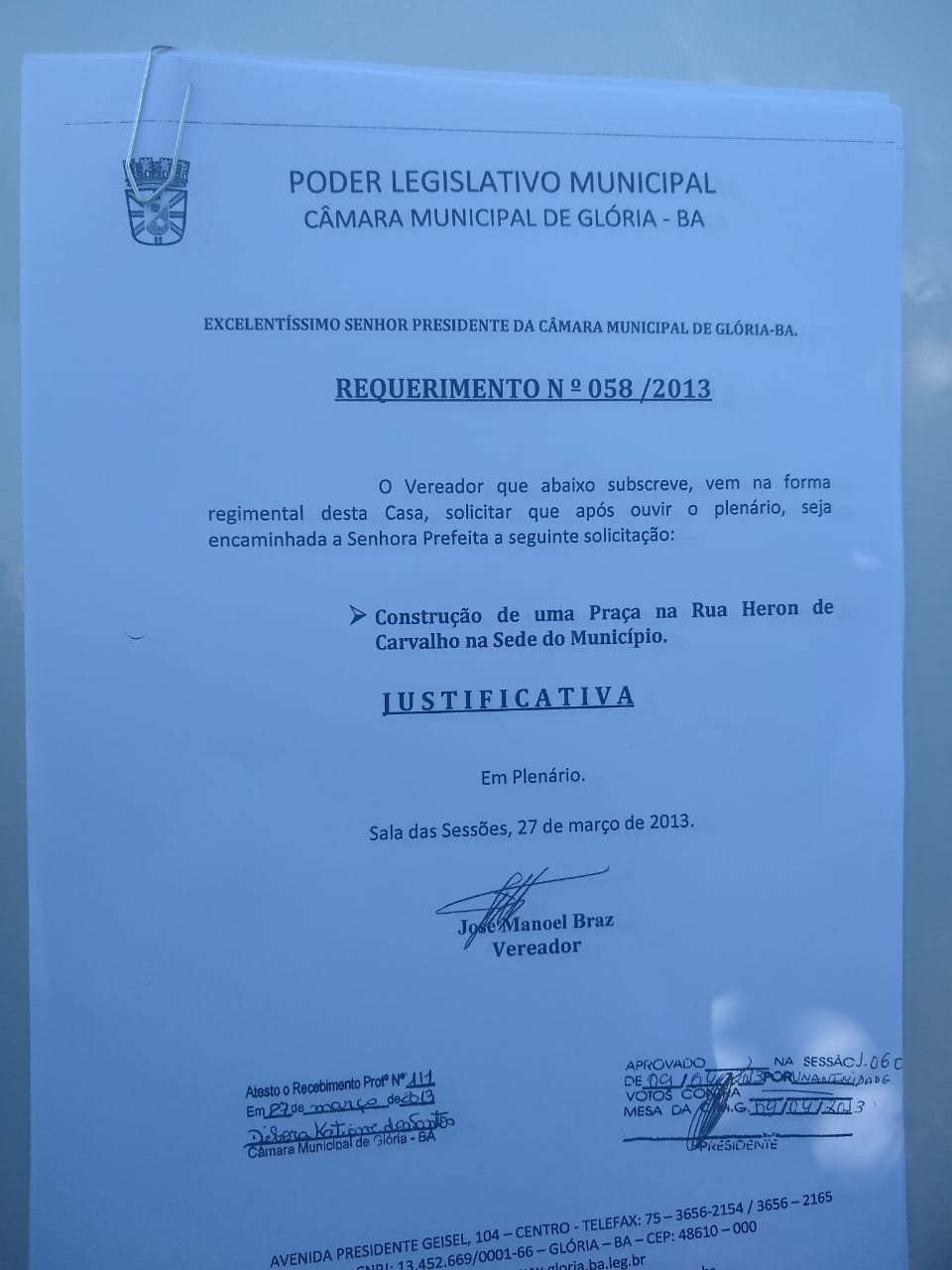 A próxima praça que será inaugurada em seguida a Praça Heron de Carvalho será a Praça San Tiago na sede do município também de autoria do vereador Bezeca, . Será que vão deixar Bezeca falar dessa vez?