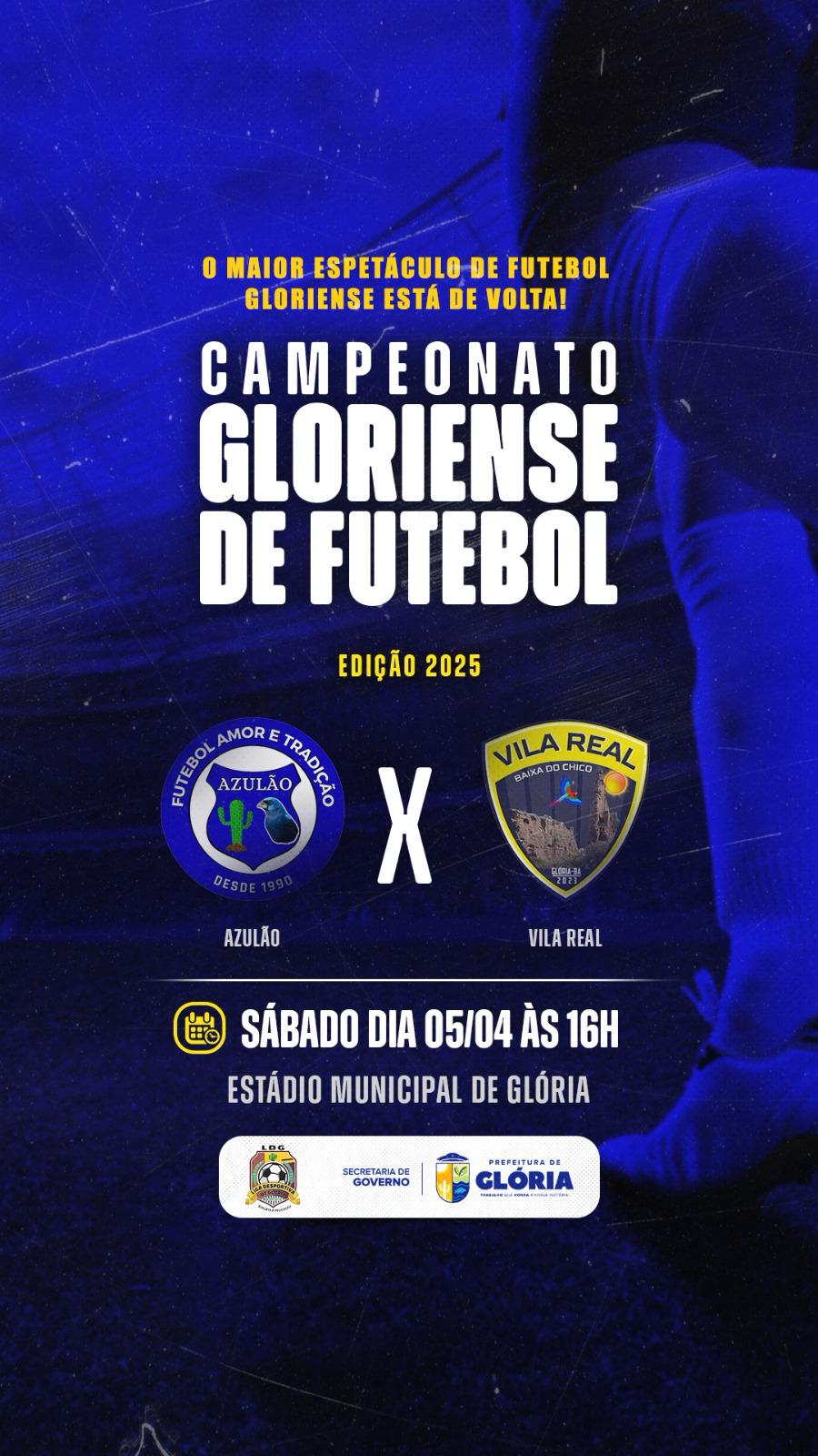 A Prefeitura Municipal de Glória-BA, por meio da Secretaria de Governo, e com a organização da Liga Desportiva de Glória, convida toda a população para mais um fim de semana de grandes jogos no Estádio Municipal Edson Francisco dos Santos. O campeonato segue movimentando o esporte local e promete disputas acirradas dentro de campo!
