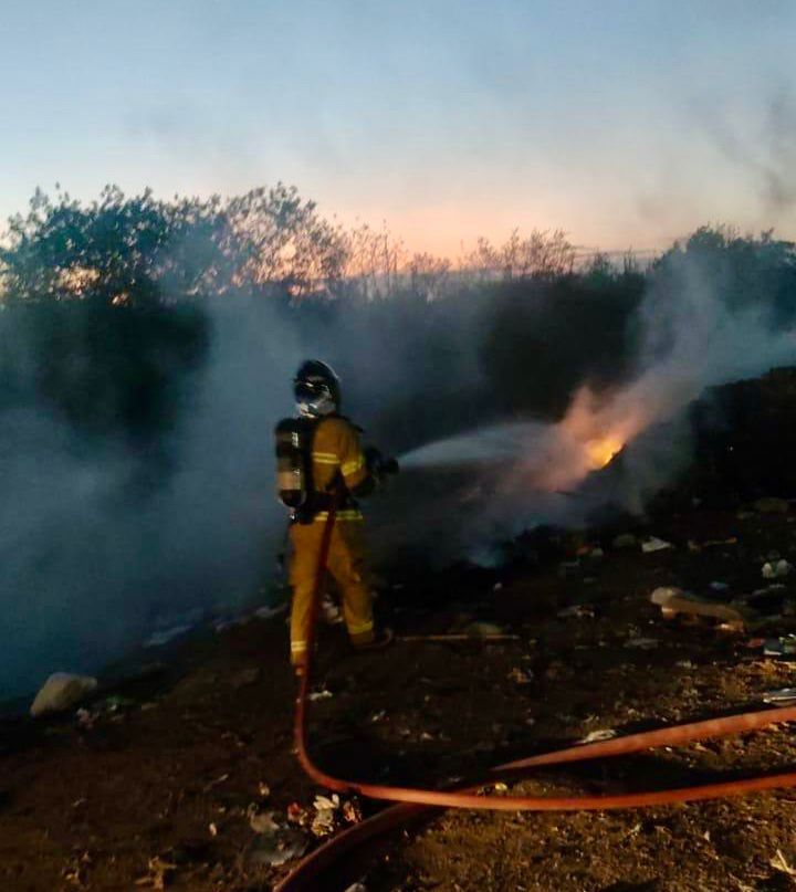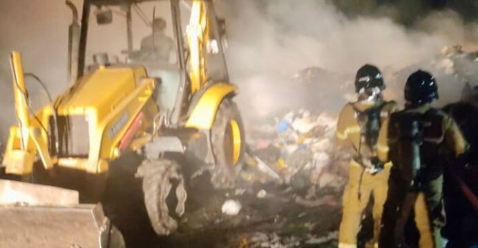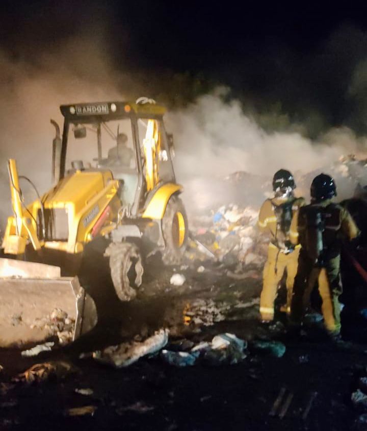 No local, os bombeiros iniciaram o combate às chamas e contaram com o apoio de uma retroescavadeira, que foi utilizada para espalhar o lixo amontoado, facilitando o combate às chamas.