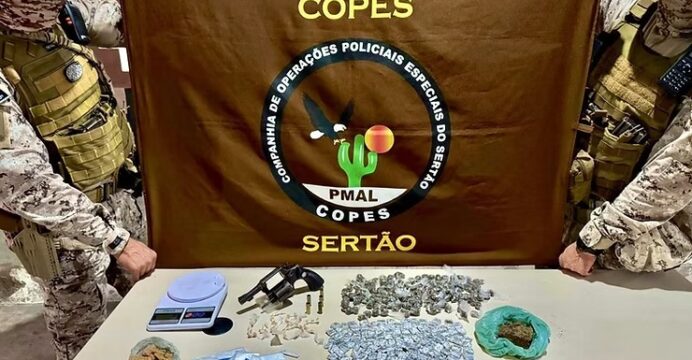 Um homem suspeito de integrar uma facção criminosa e atuar como gerente do tráfico de drogas na cidade de Piranhas, no Sertão de Alagoas, morreu durante uma troca de tiros com a polícia na noite desta segunda-feira (23). A ação foi realizada por equipes da COPES – Caatinga, que realizavam patrulhamento preventivo e ostensivo no município.
