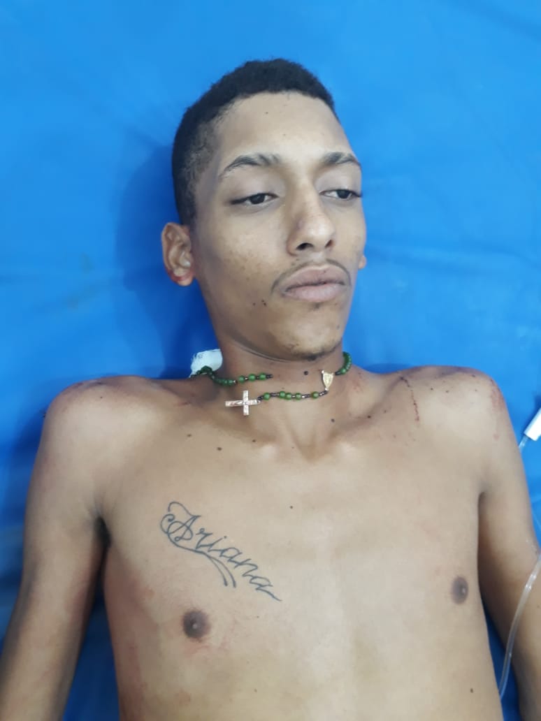 A Sra Jeane também informou que foram deflagrados 04 disparos, aos quais 02 vieram alvejar seu filho. Um dos disparos acertou o ombro direito e o outro na região glútea. Vizinhos prestaram socorro para vítima que foi prontamente atendida pela médica de plantão. Após colhidos as informações necessárias, foi informado a Delegacia de Polícia Civil local. Os militares Saíram na busca de capturar os autores da tentativa, onde a mãe da vítima informou que os mesmos estavam de capacete e numa moto shineray preta. Porém a busca foi sem êxito. A vítima permanece internada no hospital.