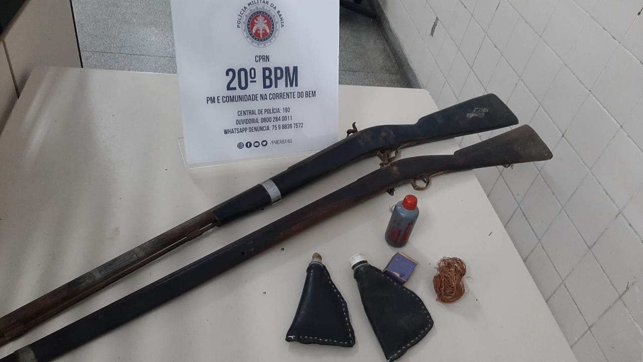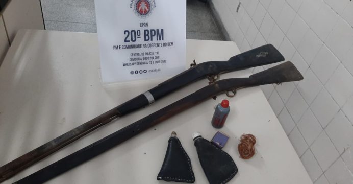 Os policiais deslocaram ao local da situação e na residência do acusado encontraram as duas armas citadas pelo solicitante. Diante do fato, foi dada voz de prisão e conduzido a Delegacia de polícia de Paulo Afonso-BA para serem tomadas as medidas cabíveis.