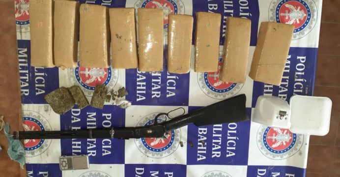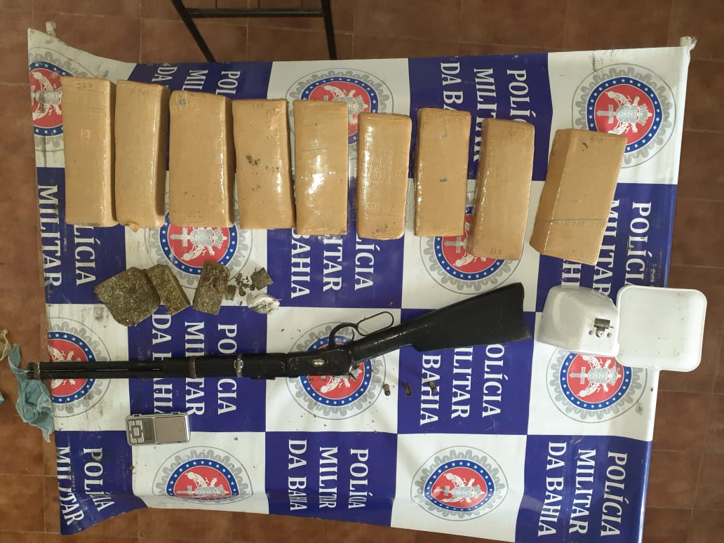 Por volta das 6h30min, desta sexta feira, 14.02.2020, a guarnição recebeu denúncia de que indivíduos estavam praticando tráfico de drogas no povoado caboclo em uma determinada residência. As guarnições de Antas, Sítio do Quinto e Jeremoabo foram deslocadas até o citado povoado e identificaram o local denunciado. Um indivíduo tentou evadir após visualizar as guarnições, não obtendo êxito. Em continuidade, após buscas, os seguintes materiais pertencentes ao indivíduo foram localizados: 01 balança de precisão, 01 Carabina Cal.44, 9 kg de entorpecente análoga à maconha.