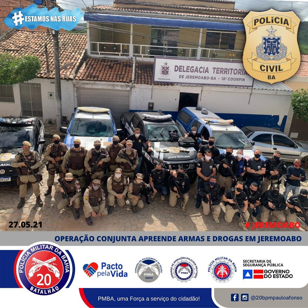 EQUIPES: POLÍCIA CIVIL: Delegacias da 18º COORPIN, DT – Jeremoabo, DT – Paulo Afonso, DT – Pedro Alexandre, DT – Sítio Do Quinto, DT – Antas. A Polícia Civil enaltece a excelente parceria estabelecida entre as instituições acima citadas, no sentido de melhor servir a sociedade, ao tempo em que agradece a colaboração de todos.