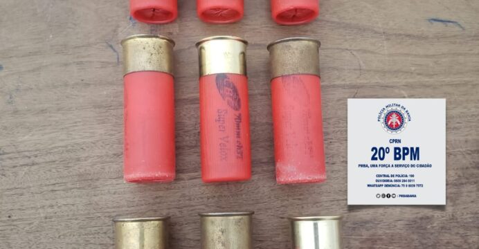 Ontem 02/05/22 a Polícia Militar da Bahia (PMBA), através do 20º Batalhão de Polícia Militar (BPM/ Paulo Afonso-BA realizou a prisão de um suspeito por porte ilegal de balotes de arma de fogo cal. 12 em Jeremoabo-BA, nesta segunda-feira 02, Por volta das 12h40min, durante a Operação Força Total, ao abordar as pessoas e veículos que estavam no Bar Copacabana, foi encontrado no interior do veículo Celta de propriedade do acusado, 09 (NOVE) munições intactas cal. 12. O mesmo foi conduzido à Delegacia de Polícia Civil onde foram tomadas as medidas cabíveis.