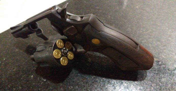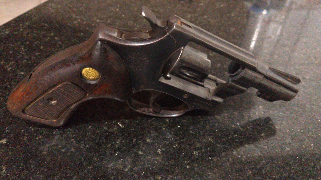 Segundo a vítima o mesmo estava em sua sala dentro de sua residência, aguardando dois clientes, quando de repente surgiu um rapaz moreno, aparentando ser jovem, apontando uma arma em sua direção, vindo a deflagrar 03 vezes contra o mesmo, sendo atingido no ombro por dois projéteis, em seguida fugindo a pé. Os Policiais chegaram ao local e a vítima estava com o ombro direito sangrando e a arma utilizada estava na varanda da casa (revólver de marca tauros cal 32, capacidade de 05 tiros, sendo 03 deflagrados).