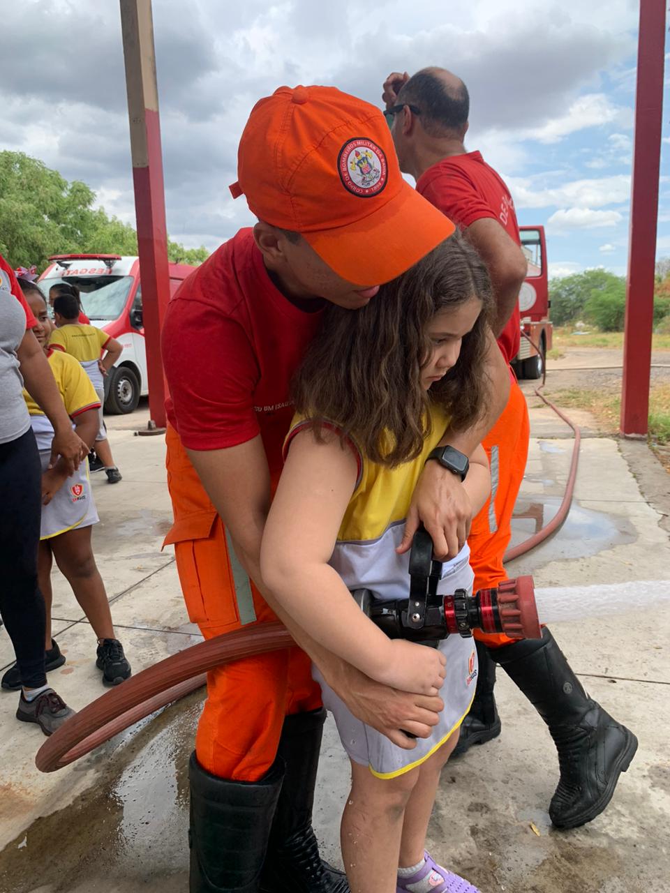 Além de instruções, as crianças puderam conhecer equipamentos e as viaturas de combate a incêndio da unidade. Também tiveram a oportunidade de dar um passeio na viatura acompanhadas dos militares da corporação e professoras.