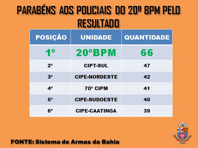 Mais uma vez o 20 Batalhão de Polícia Militar de Paulo Afonso Bahia entra na primeira posição da Bahia em apreensão de Armas de Fogo.