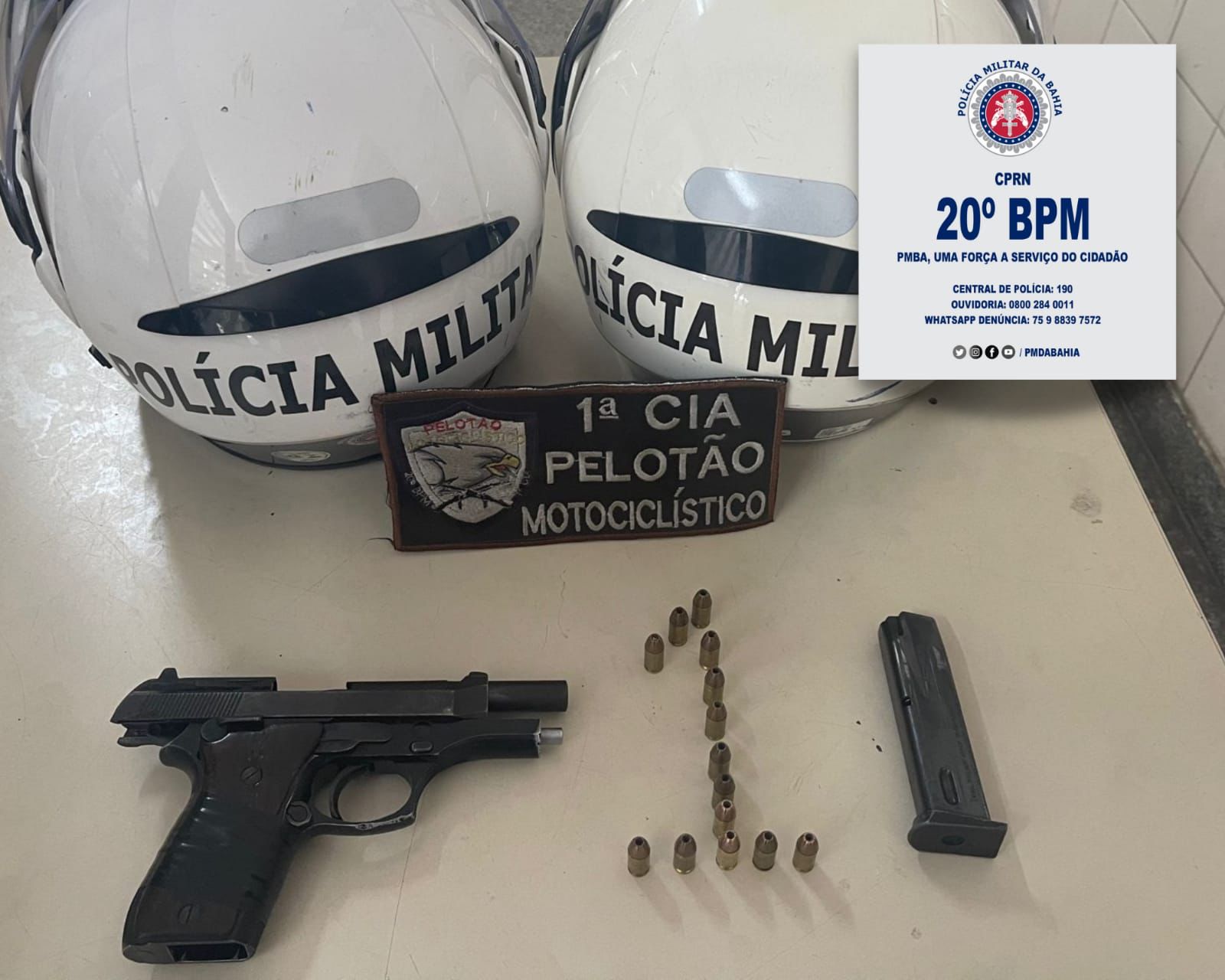 A Polícia Militar da Bahia (PMBA), através do 20º Batalhão de Polícia Militar (BPM/ Paulo Afonso-BA, Unidade Operacional comandada pelo Ten Cel PM Gabriel Neto, subordinada ao Comando de Policiamento da Região Norte (CPR-N), comandado pelo Coronel PM Valter Araújo apreendeu, neste domingo (13), uma arma de fogo e munições em Paulo Afonso-BA.