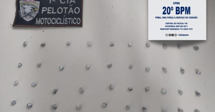 A Polícia Militar da Bahia (PMBA), através do 20º Batalhão de Polícia Militar (BPM/ Paulo Afonso-BA, Unidade Operacional comandada pelo Ten Cel PM Gabriel Neto, subordinada ao Comando de Policiamento da Região Norte (CPR-N), comandado pelo Coronel PM Valter Araújo apreendeu, neste sábado (03), dezenas de pedras de material análogo à crack em Paulo Afonso-BA.
