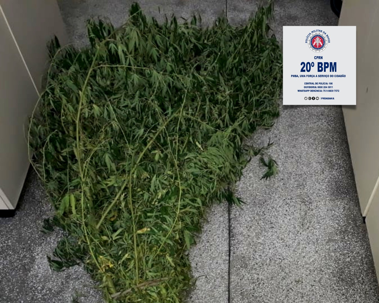 A Polícia Militar da Bahia (PMBA), através do 20º Batalhão de Polícia Militar (BPM/ Paulo Afonso-BA, Unidade Operacional comandada pelo Ten Cel PM Gabriel Neto, estando o subcomandante, Cap PM Estevam respondendo pelo comando, subordinada ao Comando de Policiamento da Região Norte (CPR-N), comandado pelo Coronel PM Valter Araújo, realizou nesta sexta-feira (25), Por volta das 10:40h, após receber denúncia que na Rua 02 de Julho BTN I, no quintal havia plantio de Cannabis sativa (Maconha), chegando ao local, foi visualizado pelo muro os 03 pés da erva.