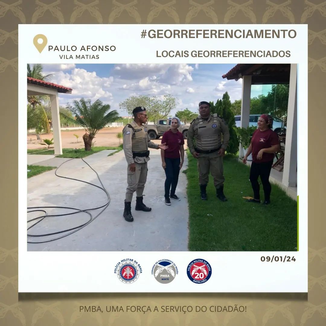 A Polícia Militar da Bahia (PMBA), através do 20º BPM, comandado pelo Ten Cel PM Sena, subordinada ao Comando de Policiamento da Região Nordeste (CPR-NE), comandado pelo Coronel PM César Albuquerque, iniciou nesta Terça-feira (09), a 1ª etapa de cadastramento para Policiamento Comunitário Georreferenciado, atendendo a zona rural da área de responsabilidade do 20º BPM