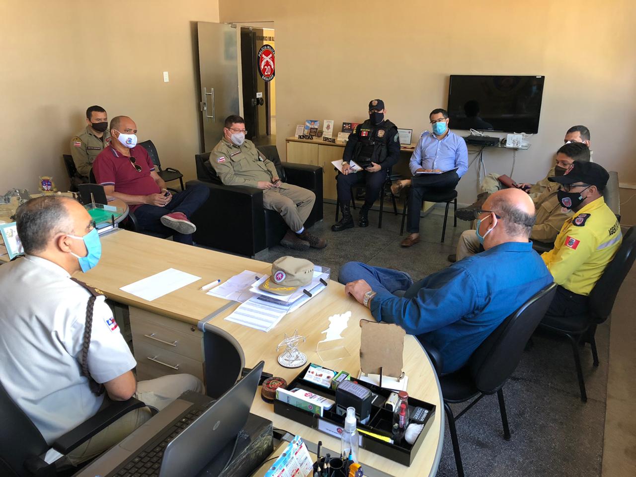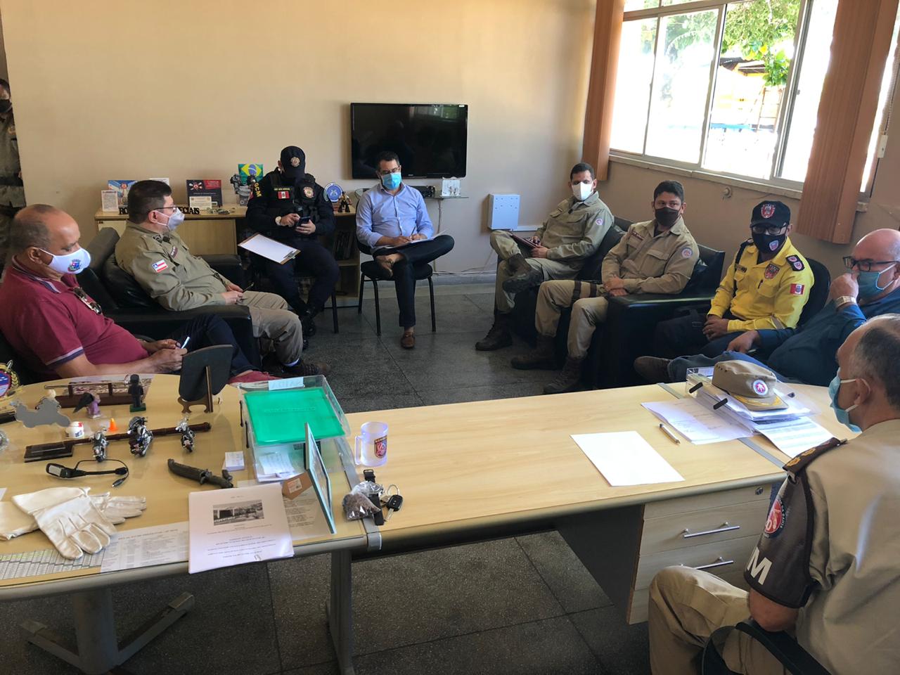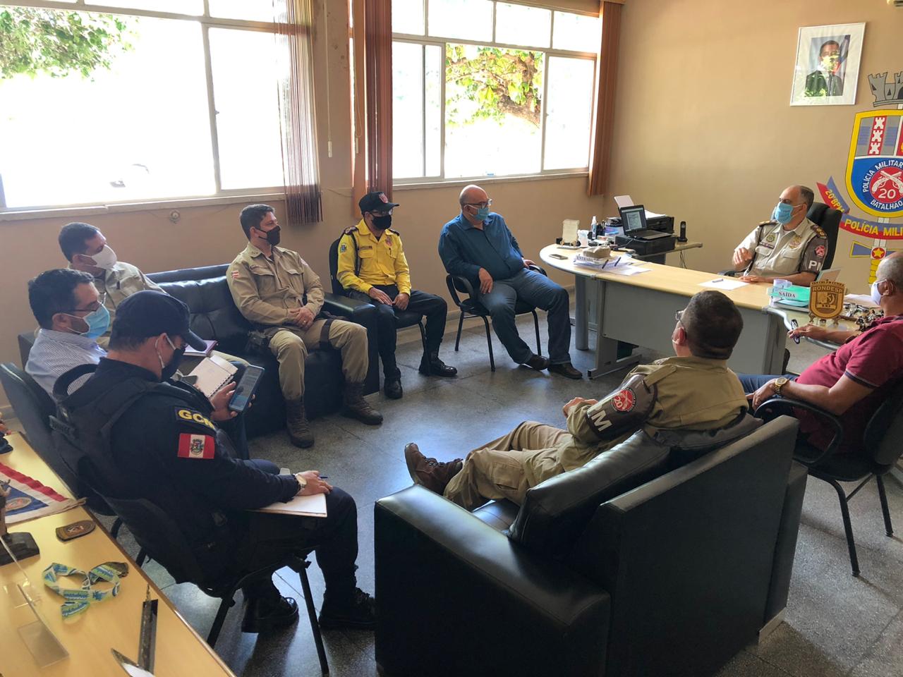 Na oportunidade, foram tratadas as ações a serem implementadas a fim de que seja cumprido o decreto estadual de nº 19.829, assinado pelo Governador do Estado, Rui Costa. Foi definido que pontos estratégicos de movimentação na cidade serão fiscalizados, a fim de orientar a população acerca da necessidade de cumprimento do decreto, que versa o recolhimento às residências de 18h às 05h da manhã.