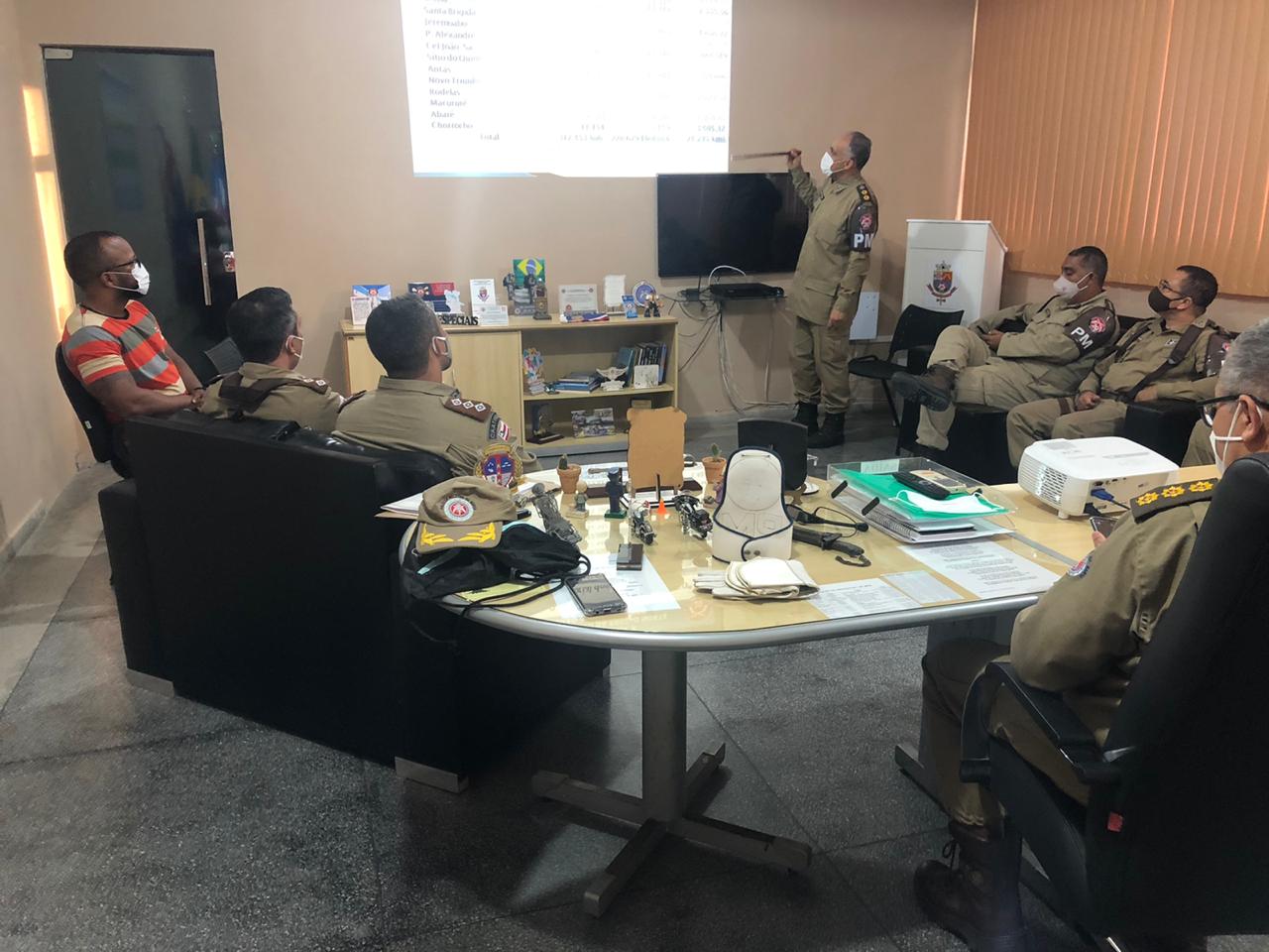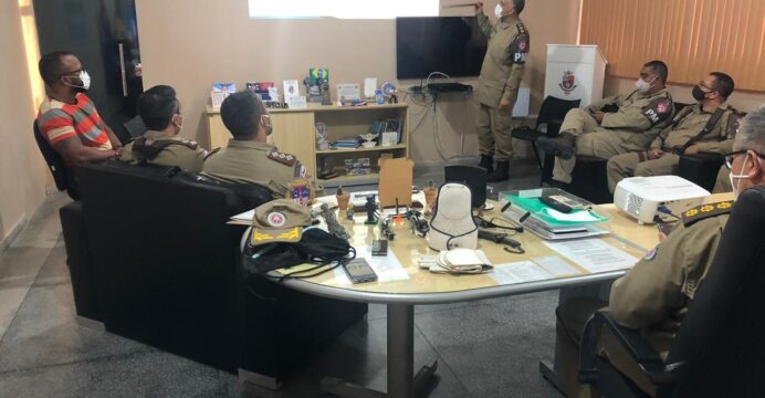 Durante a tarde, o Ten Cel PM Cunha, comandante da unidade, apresentou ao Coronel PM Admar Fontes um panorama geral sobre o planejamento do 20º BPM para estas eleições, passando por pontos como área abrangida, efetivo, apoio de outras instituições, etc.