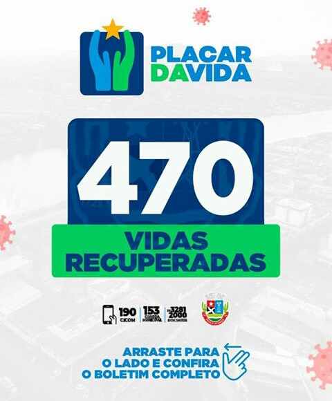 470 casos de Covid-19 recuperados; 374 casos ativos; 805 monitorados, 879 positivos acumulados e 35 óbitos pelo Coronavírus.