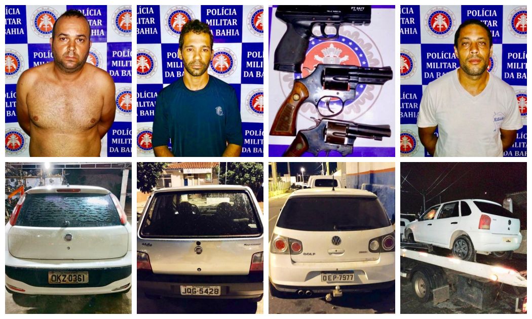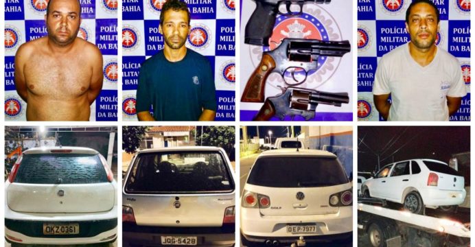 O Cmt do Batalhão alertou todos os policiais militares de serviço. A SOInt com a CETO de posse dos dados diligenciaram, culminando na localização do referido veículo próximo ao Hospital Municipal de Paulo Afonso, daí os policiais militares empreenderam todos os esforços para localizar os autores do roubo, um suspeito foi localizado a poucos metros do local com as chaves do carro. Que assumiu o roubo, como também, levou os policiais aos locais onde estavam outros comparsas, armas, veículos e materiais, produto de crimes, que foram levados até a PRF para vistoria e consultas. Resultado da ação policial em conjunto com as forças de segurança pública da região: • 04 – Presos; • 04 – Veiculos recuperamos; • 02 – Armas de fogo; • 18 – Munições; • 01 – Simulacros; • 10 – Placas de veículos; • 08 – Telefones cedulares; • 02 – Carteiras porta documentos; • 04 – Documentos de veículos. Todos os quatro suspeitos de integrarem a quadrilha de criminosos, os materiais apreendidos e veículos recuperados foram apresentados na delegacia para adoção das medidas próprias. Foi registrado a ocorrência n 2135/19, e formalizado o flagrante por receptação e associação criminosa em desfavor de três dos apresentados.