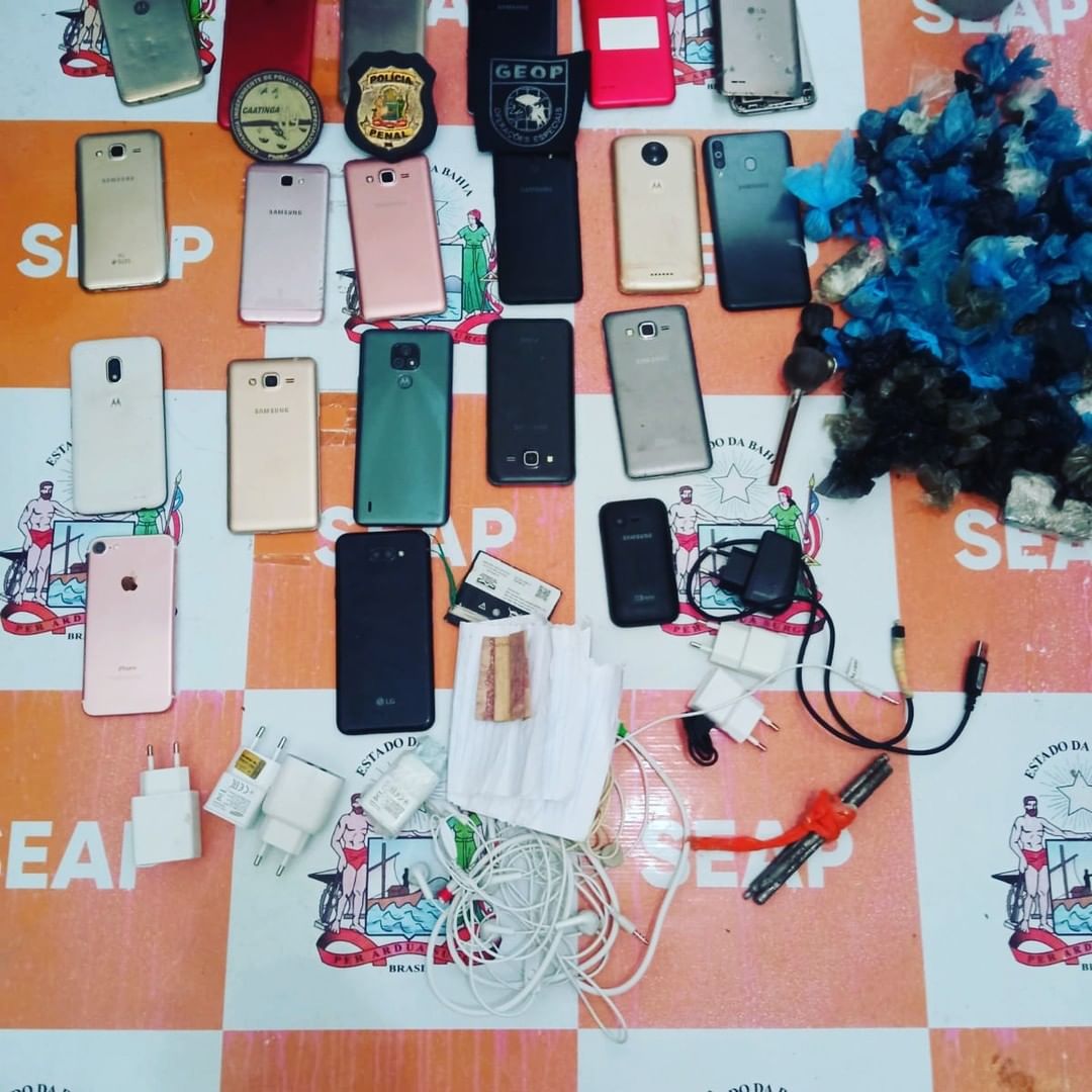 20 – aparelhos de celular 650 Gramas – Substância análoga a maconha. 06- carregadores de celular 01 – Caixa de som JBL.