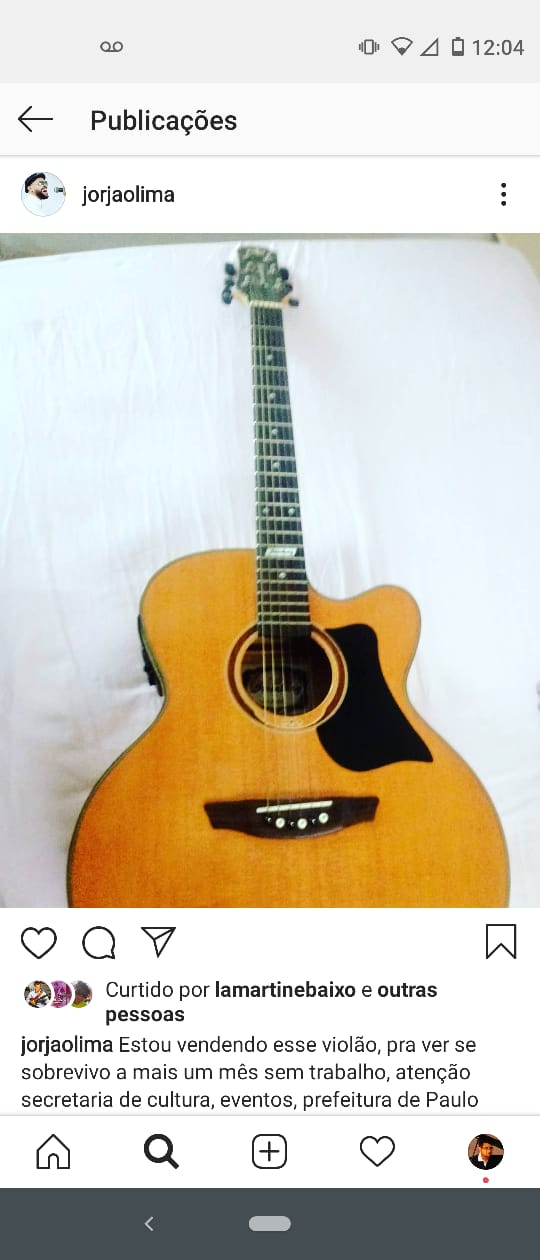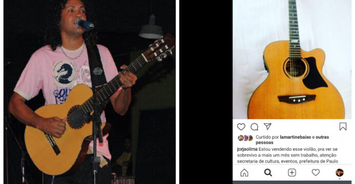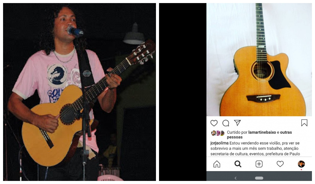 Um fato curioso e lamentável chamou a atenção nas redes sociais hoje 01 de setembro de 2020 com um anúncio da venda de um violão do cantor Jorjão Lima, seu instrumento de trabalho, para sua sobrevivência, como citou em imagem em anexo. Jorjão chama a atenção da secretaria de cultura e eventos e prefeitura.