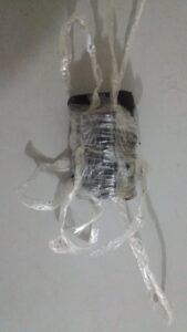 O policial de imediato informou aos Agentes Prisionais (Polícia Penal), que localizaram e apreenderam um pacote (Interceptação de objeto ilícito) próximo ao Módulo “B”. No pacote continha cerca de 670g de Maconha Prensada e 01 (uma) Munição Calibre 32.