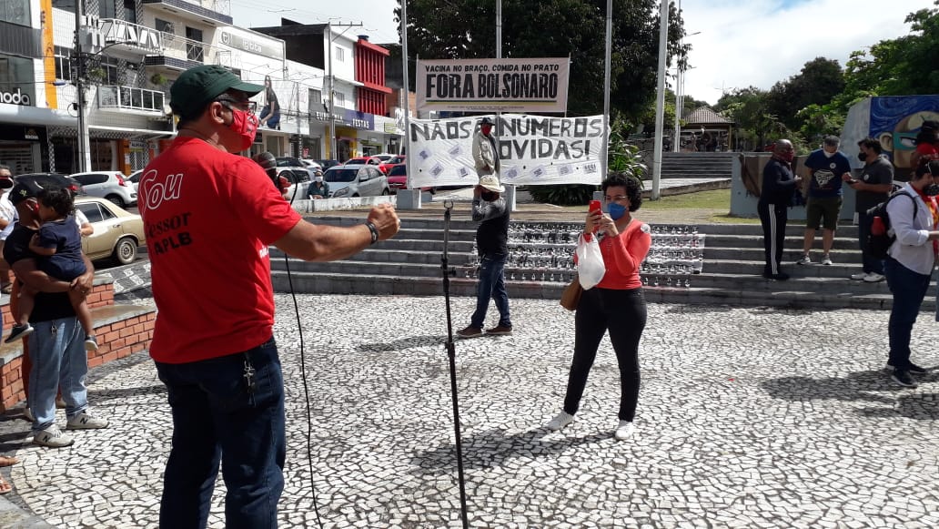 Mesmo sob a chuva que caiu durante o evento, lideranças se revezaram denunciando a situação vivida pelo país, entremeadas por músicas executadas pelo artista Izael. “Quando tomei a primeira dose da vacina, chorei de alegria, e no dia que tomei a segunda, na noite anterior, chorei muito por saber que mais de 500 mil pessoas não tiveram essa oportunidade”, falou um dos manifestantes.