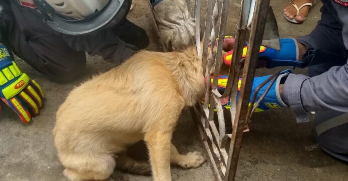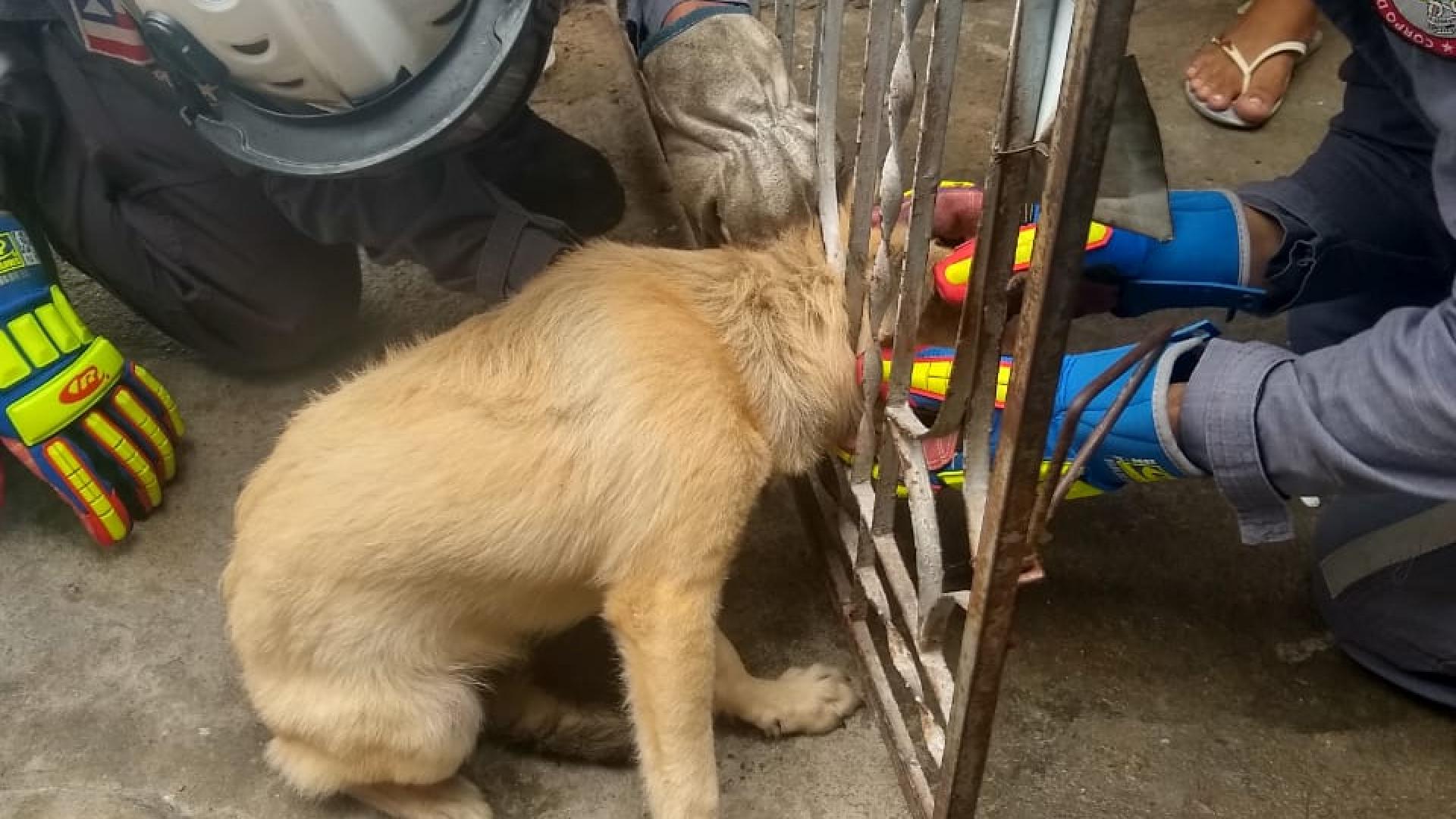 Uma guarnição do 15° Grupamento de Bombeiros Militar (15° GBM/Paulo Afonso) resgatou um cachorro que estava com a cabeça presa numa grade. A ocorrência aconteceu nesta segunda-feira (23) no bairro Centenario em Paulo Afonso.
