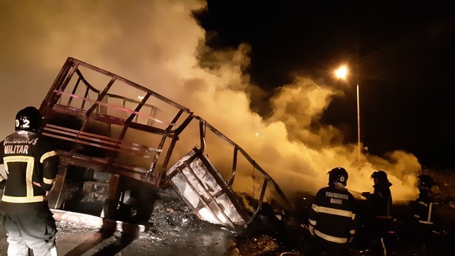 Ao chegar ao local, as equipes se depararam com a carroceria já tomada pelas chamas, felizmente não houve vítimas, o motorista, que não foi identificado, não se encontrava mais no local, houve somente danos materiais. No combate foram utilizados aproximadamente 22.000 litros de água das viaturas auto bomba tanque (ABT) e a auto busca e salvamento (ABS).