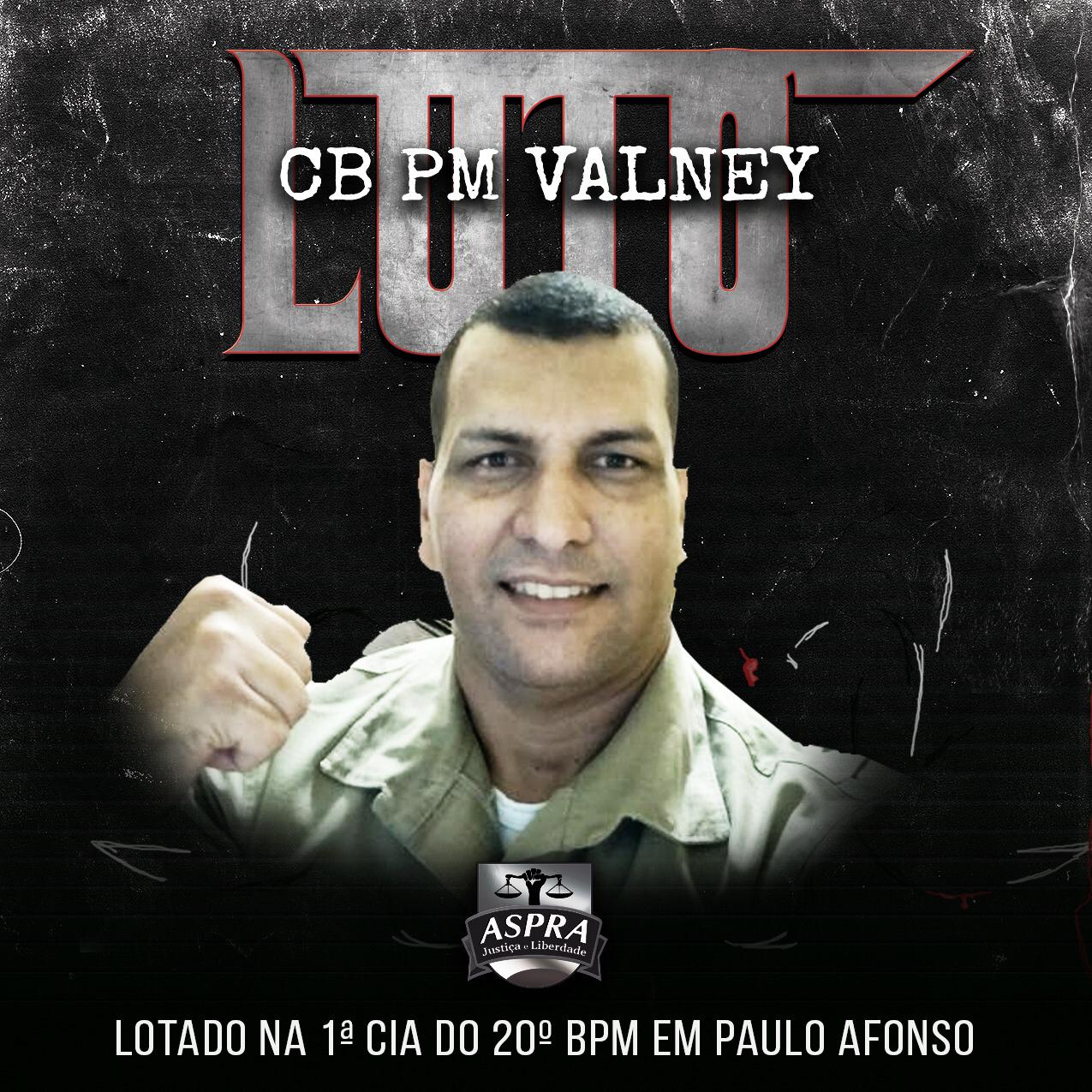 Hoje 06 de abril de 2021 mais um Policial Militar do 20° BPM-Batalhão de Polícia Militar em Paulo Afonso Bahia faleceu. Trata-se de Cabo PM Ronaldo Valney da Silva, 42 anos, residente à Rua Rui Barbosa, centro da cidade. Cabo Valney era lotado na primeira companhia do 20° BPM.