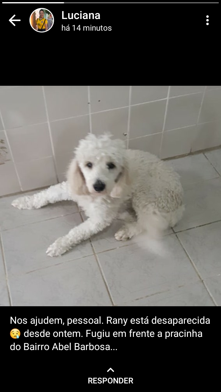 Cachorro de estimação está desaparecido desde ontem 20 de dezembro de 2020. Cachorro atende por Rany, fugiu nas proximidades da Praça do Bairro Abel Barbosa em Paulo Afonso Bahia. Acompanhe o áudio de sua proprietária em desespero a procura de seu animal.