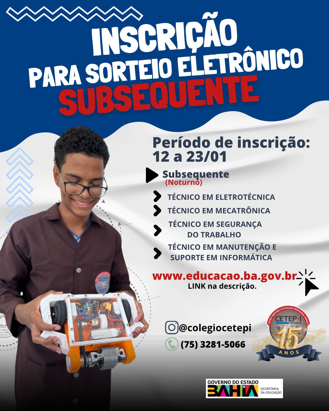 PAULO AFONSO-BA: CETEP ABRE INSCRIÇÃO PARA SORTEIO ELETRÓNICO