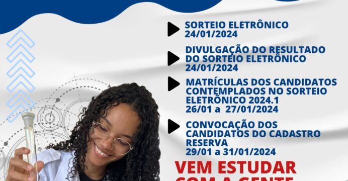 Período de inscrições do Sorteio Eletrônico para os cursos Técnicos de Nível Médio 2024.1 12/01 a 23/01/2024