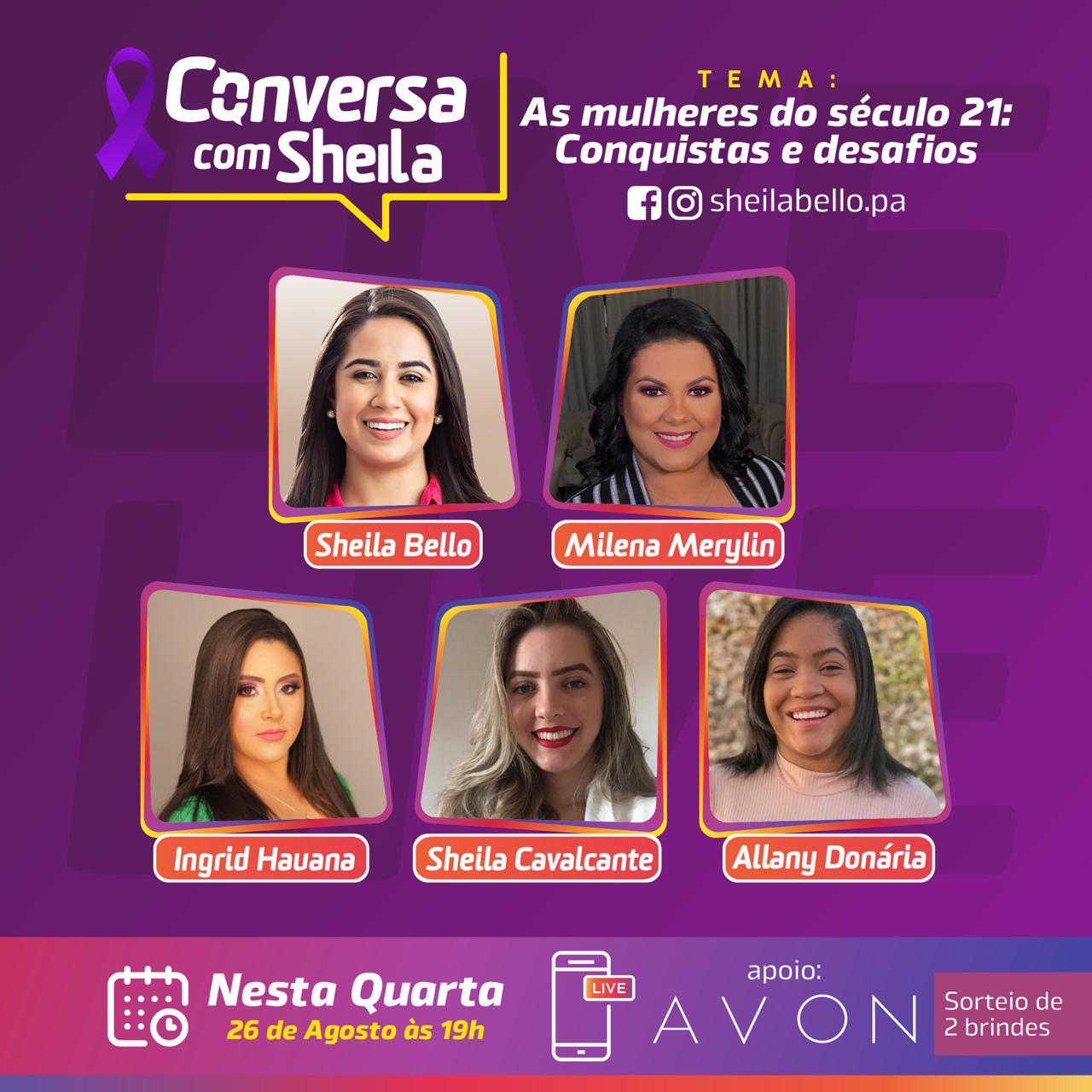 Encerrando o Agosto Lilás, mês de combate à violência contra as mulheres, a live “Conversa com Sheila” estará conversando com 04 convidadas nesta quarta-feira, 26/08, às 19h. Não Percam, durante a live serão sorteados brindes ofertados pela Avon. As mulheres do século 21 já são realidade.