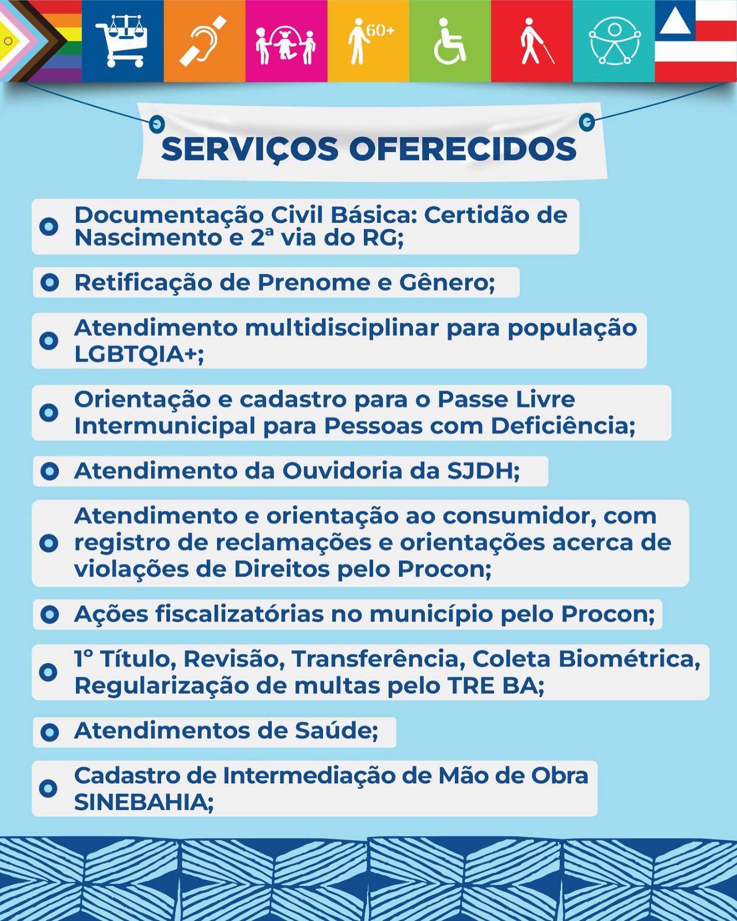 Serão ofertados os atendimentos com a Ouvidoria do Governo do Estado, DPE, Sesai, DPU, Funai, INSS, Procon, TER, TRT, Bolsa Família, Regularização de documentos pessoais, além de roda de conversa.