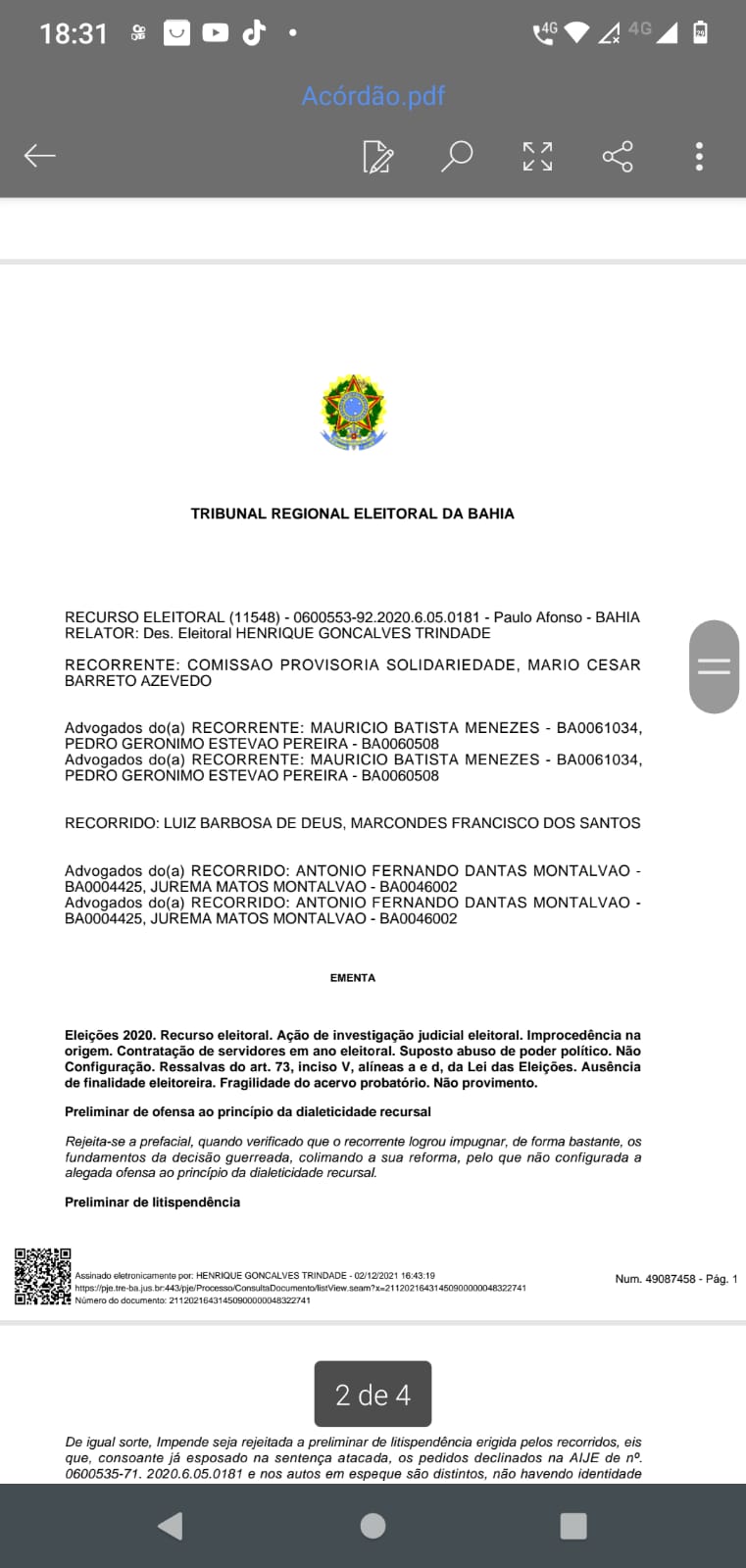 Na primeira tentativa por Paulo Afonso-BA, o Juiz Eleitoral local julgou improcedente a demanda, reconhecendo a inexistência de qualquer ato ilícito que tenha de algum modo favorecido Dr. Luiz e Marcondes. Numa segunda tentativa, Galinho entrou com recurso eleitoral no Tribunal Regional Eleitoral da Bahia, onde foi novamente derrotado, sendo reconhecida pelo TRE-BA a lisura do pleito eleitoral.