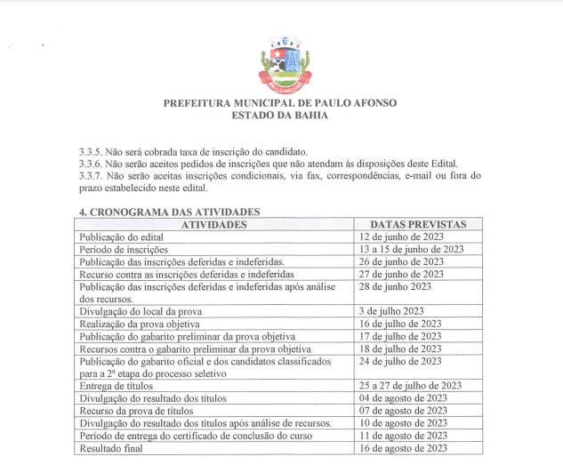 A Prefeitura de Paulo Afonso publicou no Diário Oficial desta segunda-feira (26), a lista preliminar das pessoas inscritas no Processo Seletivo Público para Agentes de Endemias. No documento consta a situação de deferido e indeferido dos 2.607 inscritos.