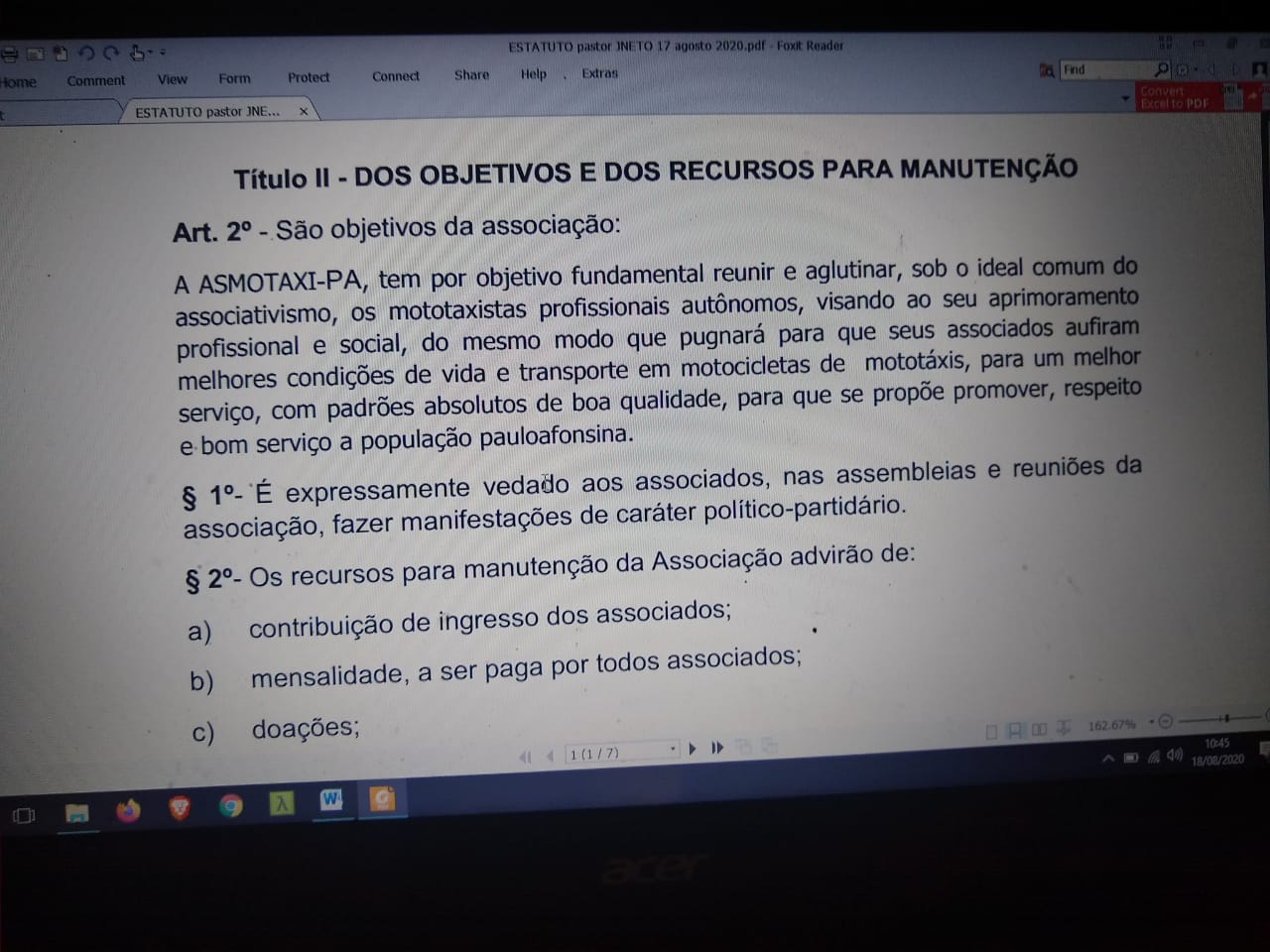 Mais uma entidade em defesa da categoria de Mototaxistas foi criada no Município de Paulo Afonso Bahia na manha de hoje 18 de agosto de 2020 as 10h no Bairro Prainha. Algumas lideranças foram convidadas para participar da Assembleia a fim de testemunhar e contribuir com o processo democrático de fundação.