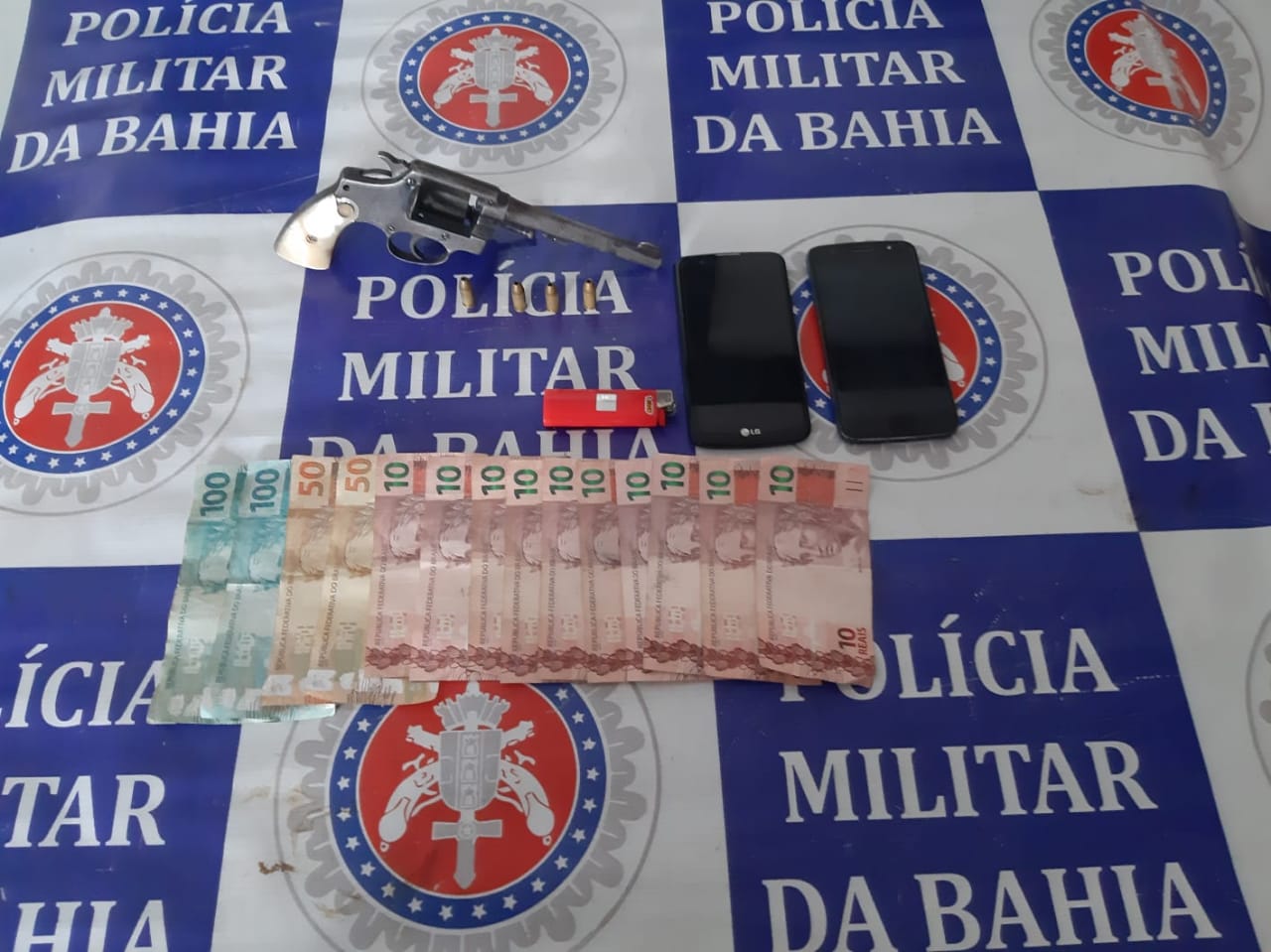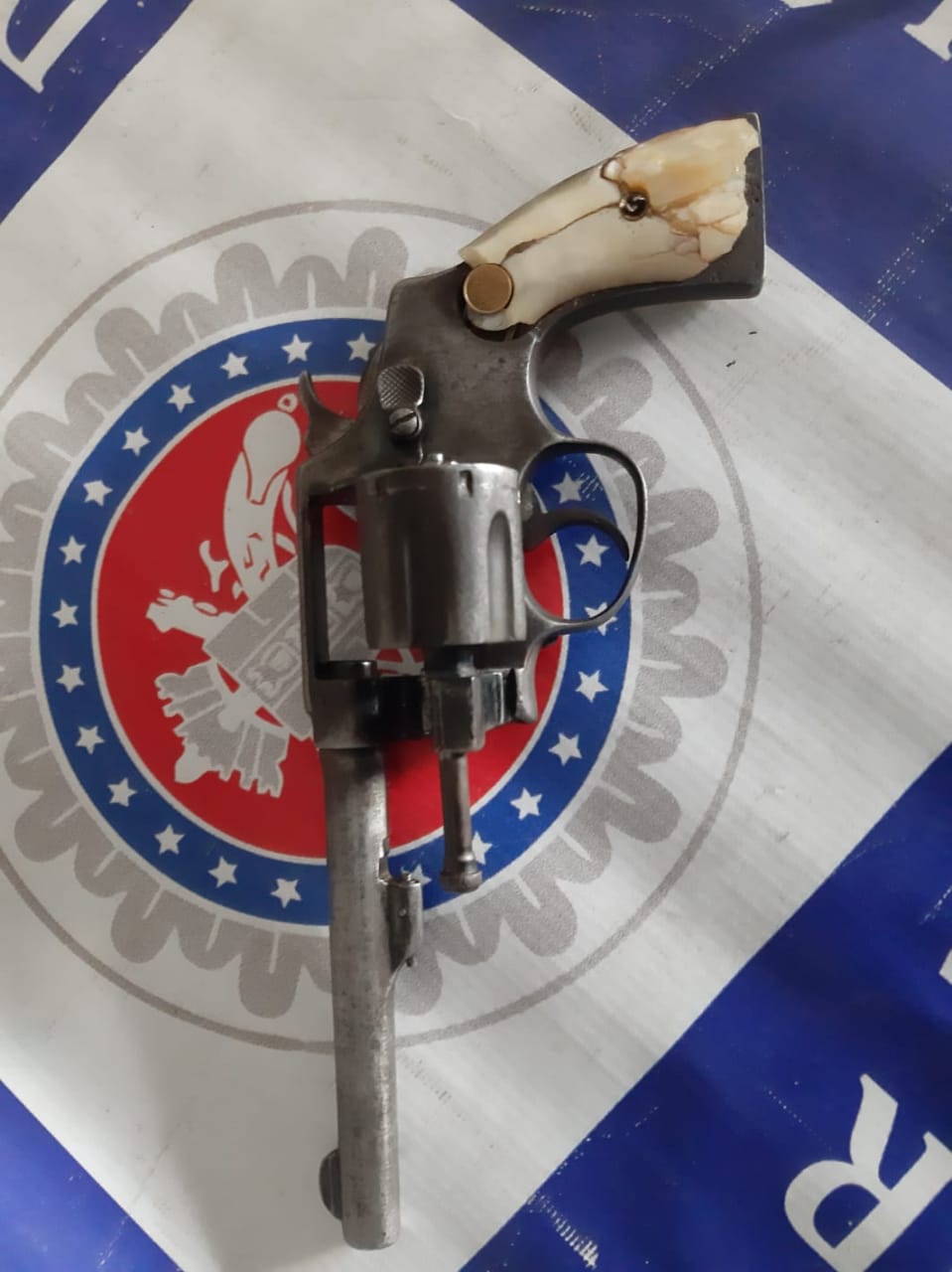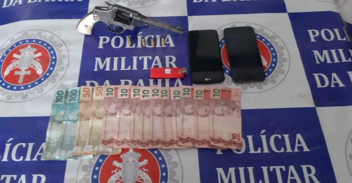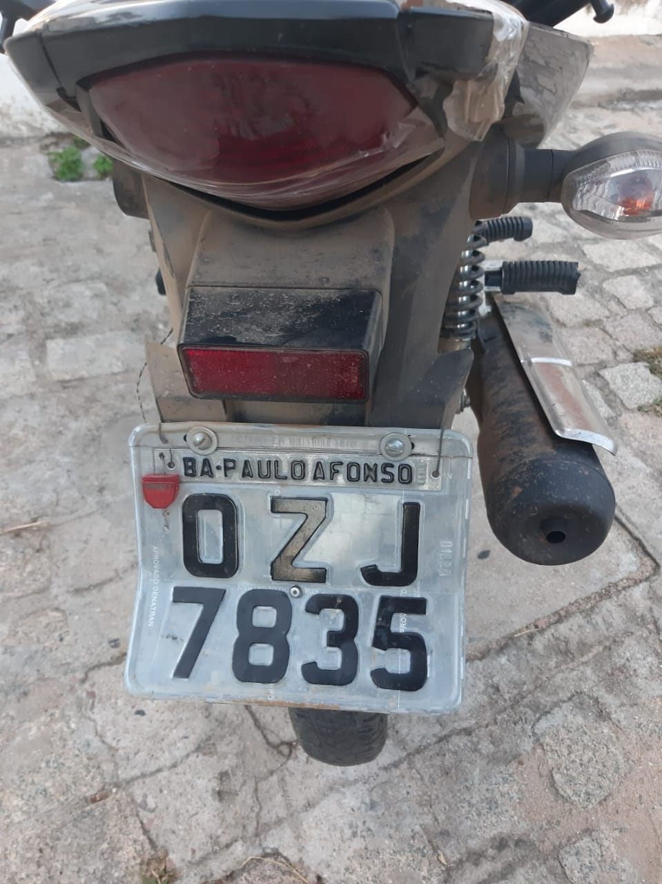 A viatura, então, intensificou as rondas na área e adjacências em busca dos indivíduos. Nas imediações do PCTRAN, um popular apontou o local em que estaria o suposto autor. Diante desse fato, foi feita a abordagem do indivíduo e, durante a revista pessoal, foi localizado com o acusado, o qual confessou ser partícipe dos assaltos, um revólver calibre 32 com 4 munições, R$400,00 (quatrocentos reais) e 2 (dois) celulares. O mesmo informou que havia abandonado a moto utilizado no assalto, moto esta oriunda de roubo e que estava com a placa adulterada, sendo que a verdadeira placa era a de OZJ 7835, sendo recuperada pelos policiais militares após buscas no Siriema I. Diante dos fatos, a guarnição de Glória, a qual estava em apoio, conduziu o menor à Delegacia de Paulo Afonso para adoção das medidas cabíveis.