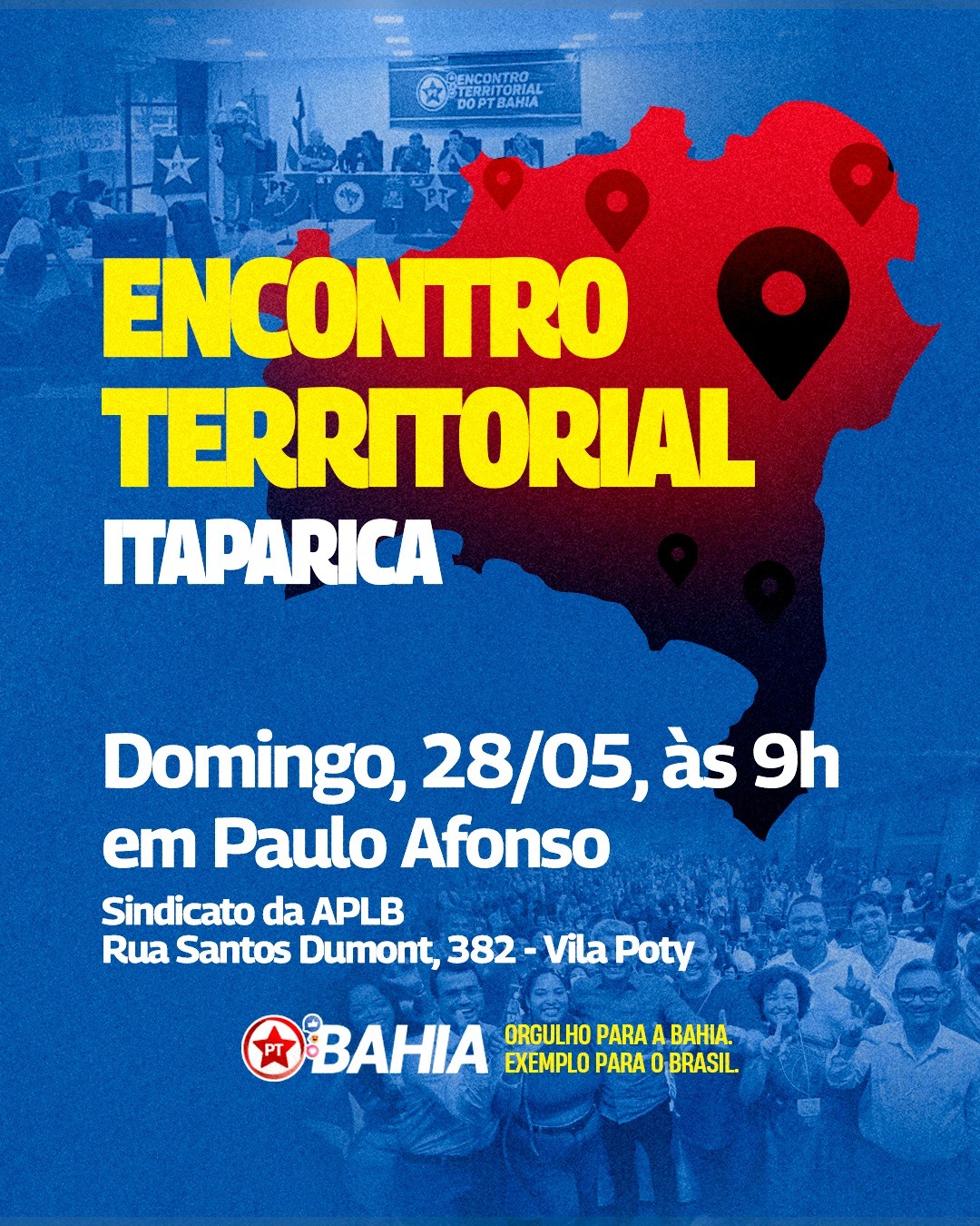 Domingo 28 de maio de 2023 acontece em Paulo Afonso Bahia, o Encontro Territorial de Itaparica do PT-Partido dos Trabalhadores da Bahia.
