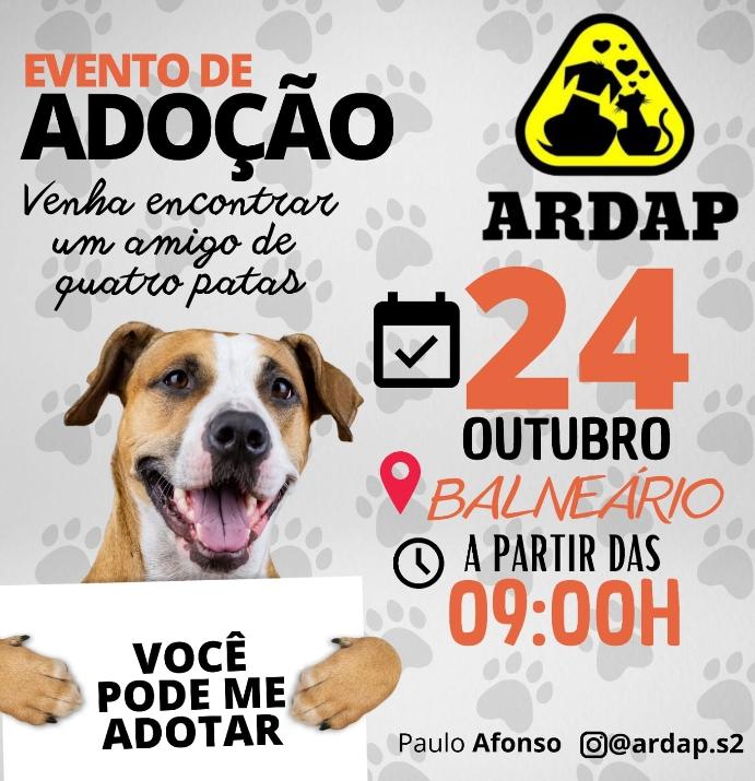 Mais um Evento de ADOÇÃO será realizado pela Ong ARDAP Associação Recanto dos Animais em Perigo em Paulo Afonso Bahia. Na Capanha Publicitária a ARDAP vem com o tema “Venha encontrar um amigo de quatro patas”. O evento acontece amanhã 24 de outubro de 2021 no Parque Balneário a partir da 9h.
