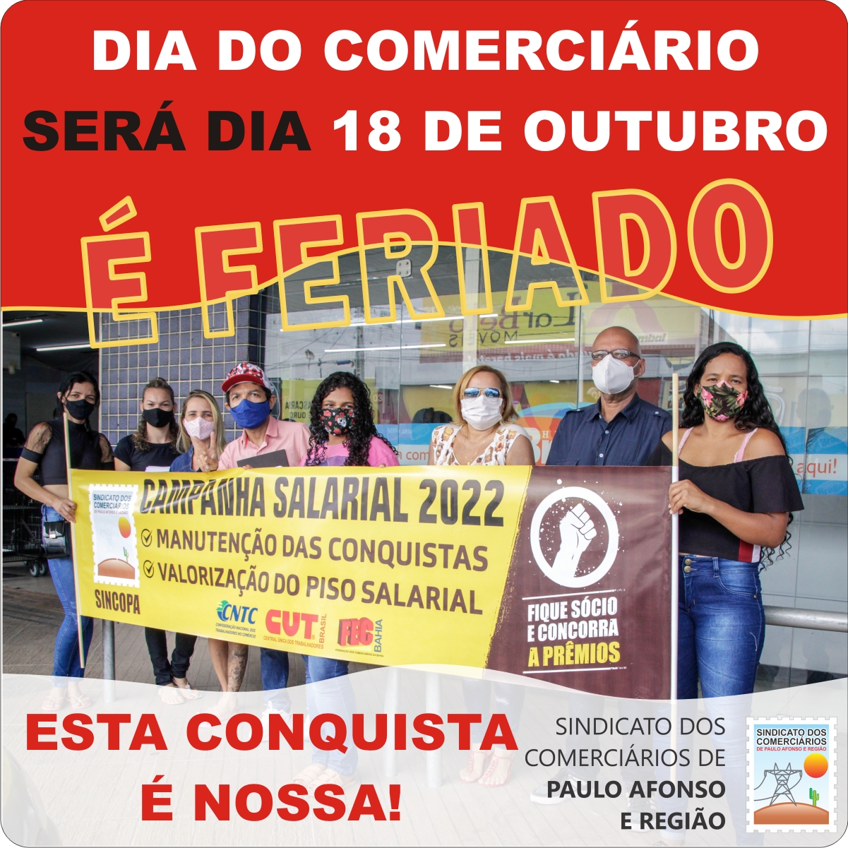 Paulo Afonso-BA: FERIADO DO DIA DO COMERCIÁRIO – 18 DE OUTUBRO 2021