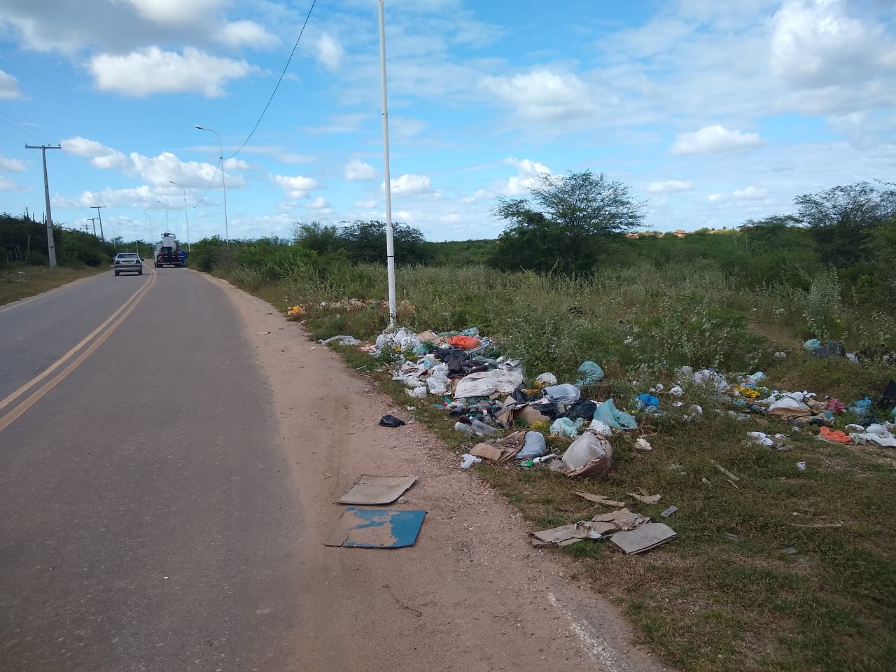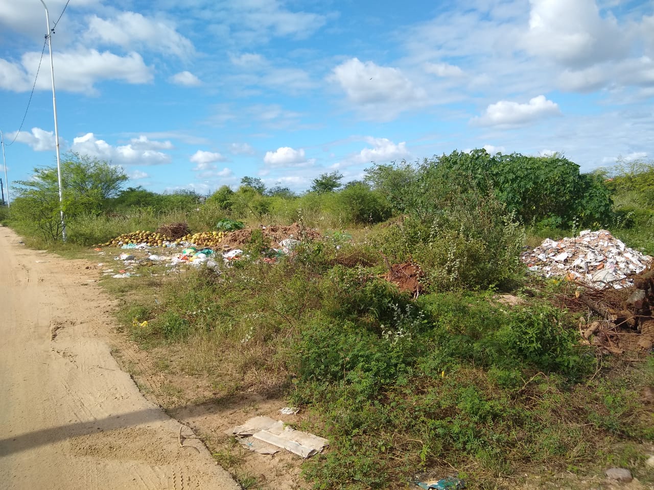 A falta de uma fiscalização mais severa faz com que algumas pessoas e até empresas joguem seus dejetos nas estradas vicinais do município. Vendedores de cocos verdes estão descartando-os em locais inadequados. Outro rejeito que é fácil encontrar, são os restos de materiais de construções, entre outros.