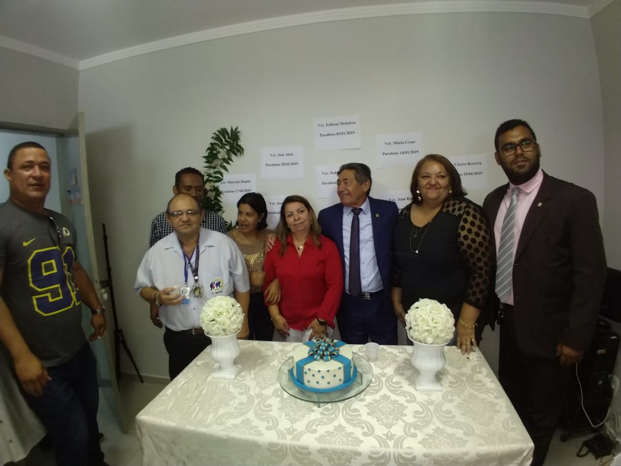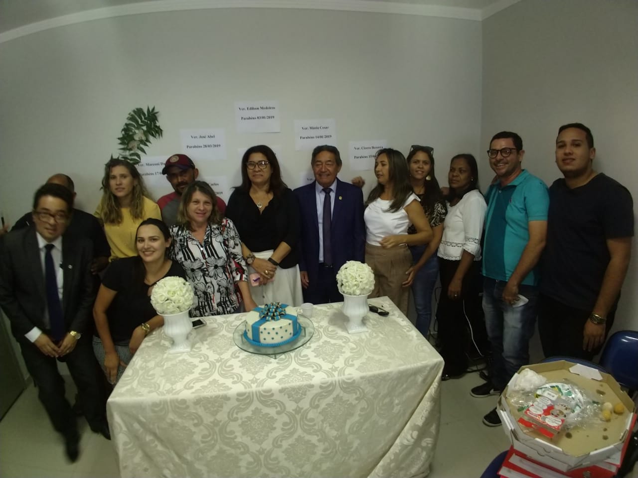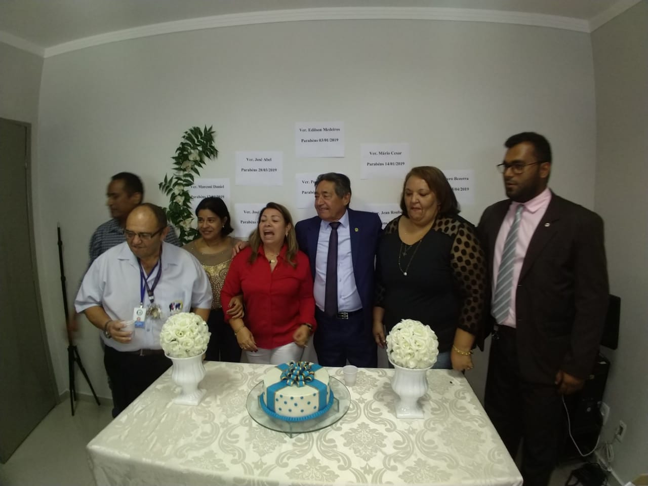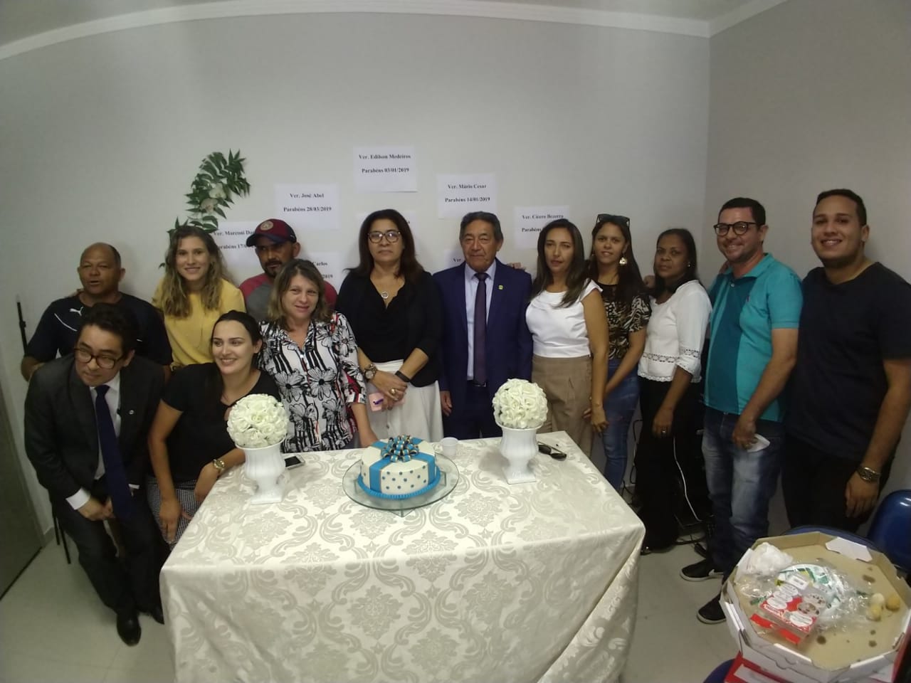 Os servidores e assessores organizaram uma surpresa na Sala de Reuniões Aroldo Ferreira, a fim de prestigiar os aniversariantes de janeiro a abril de 2019, culminando com o dia 22 de abril dia do “niver” do presidente.