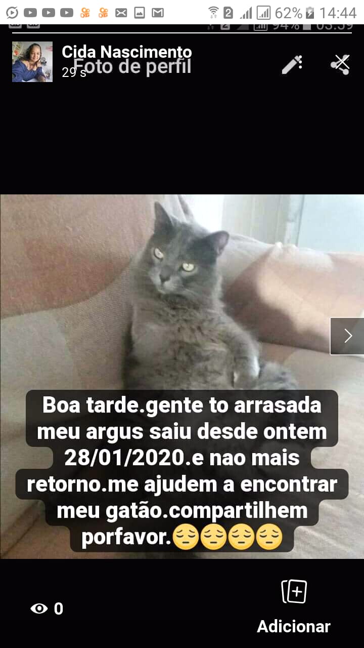 Família procura Gato de Estimação que está desaparecido desde do dia 28 de janeiro de 2020. O Gato é da raça Russa Azul, ele tem apenas 03 patas. O nome do Gato é ARGUS, ele desapareceu da Rua Duque de Caxias, centro de Paulo Afonso Bahia.